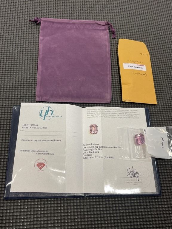 24.74 CT CERTIFIED PINK KUNZITE GEMSTONE ($12,150 APPRAISAL)