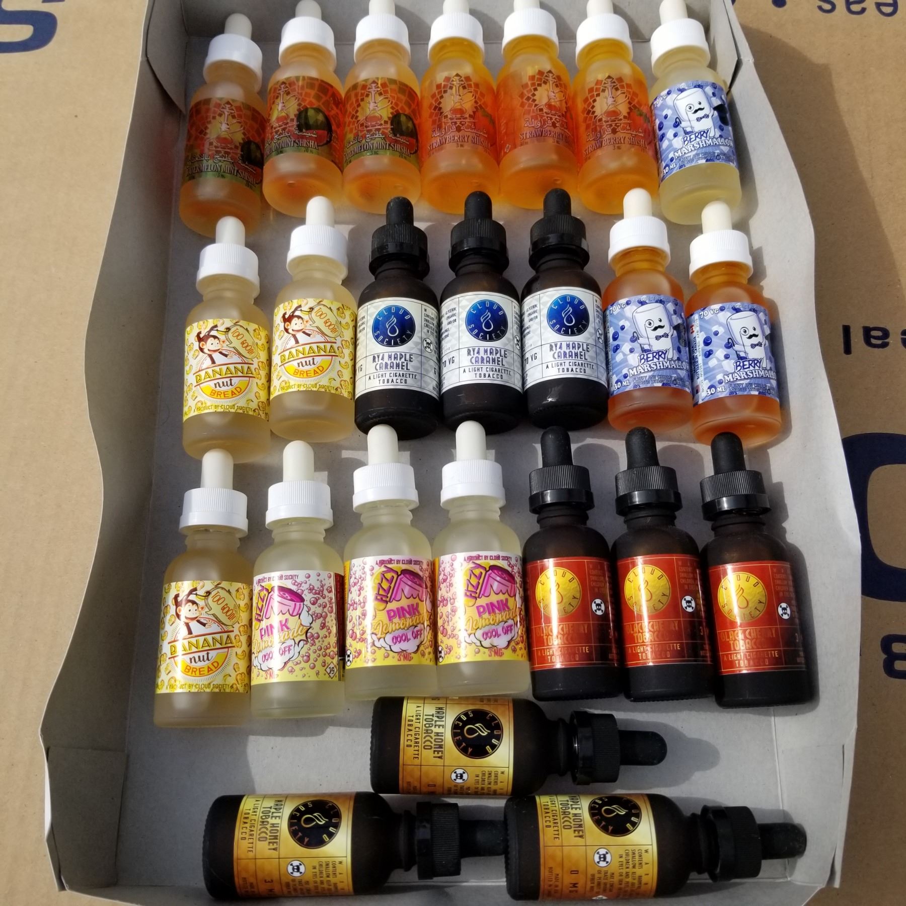 24 BOTTLES OF 30ML E VAPE JUICE