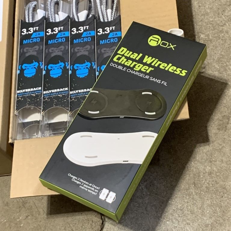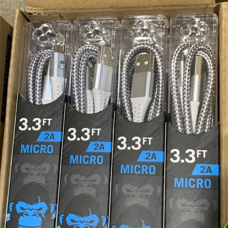 24 NEW SILVER GORILLA 3.3FT MICRO USB CHARGE CORDS AND DUAL PAD WIRELESS DEVICE CHARGER RETAIL $200+