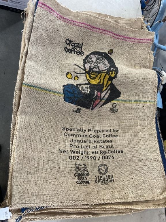 24 UNUSED VINTAGE COFFEE SACKS, FROM ACCROSS THE WORLD, VERY COLLECTIBLE