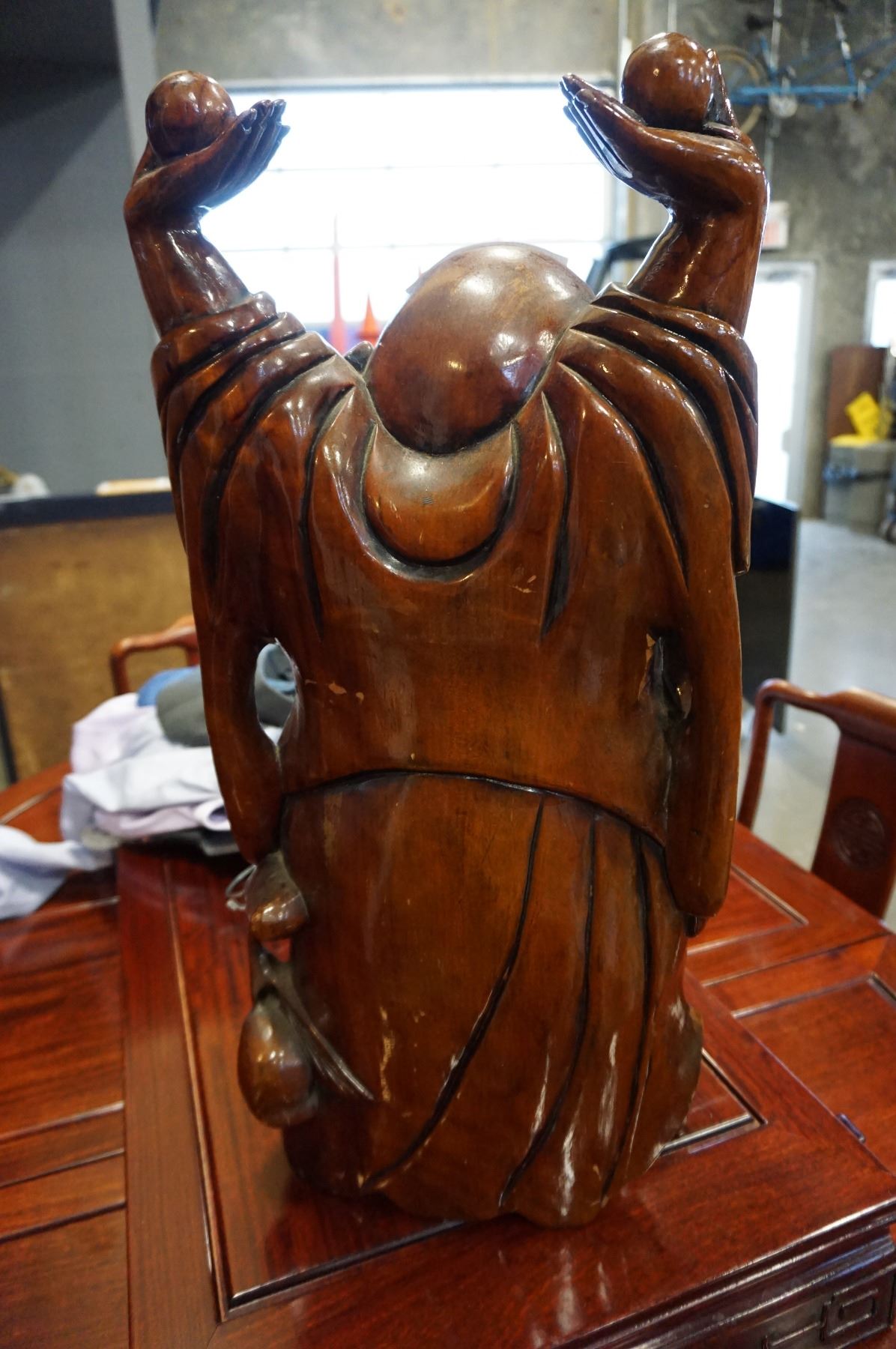 24" WOOD CARVED BUDHA