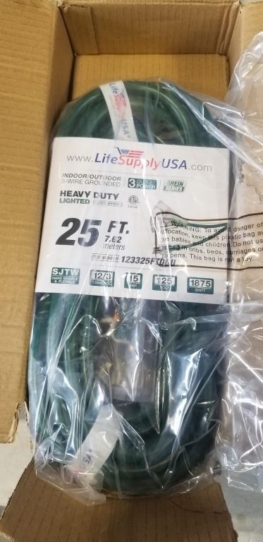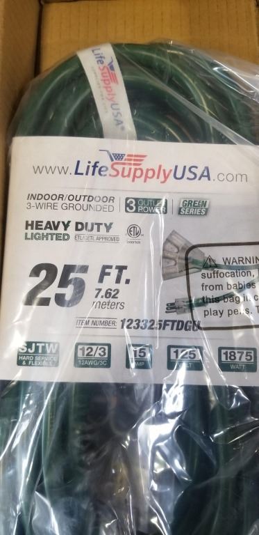 25 FEET GREEN EXTENSION CORD 12AWG