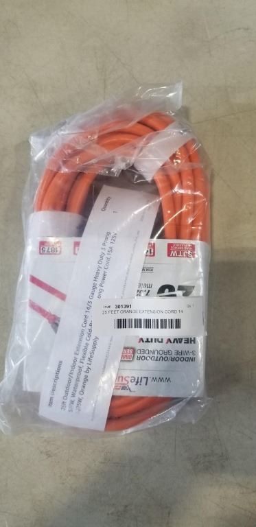 25 FEET ORANGE EXTENSION CORD 14 AWG