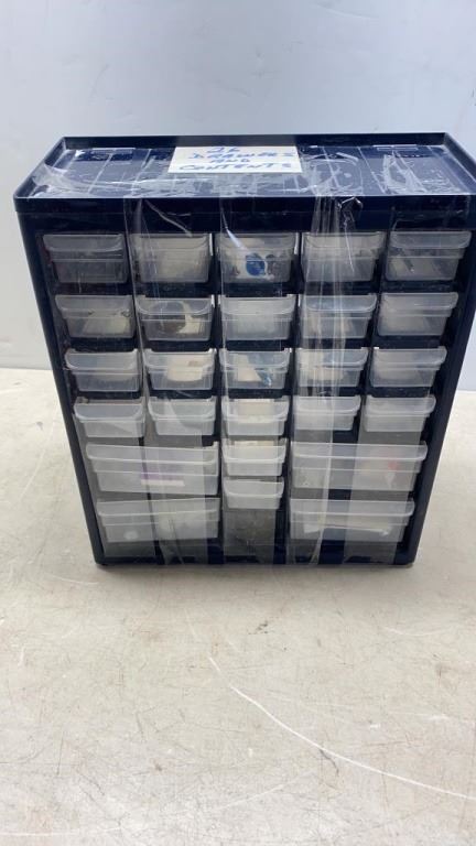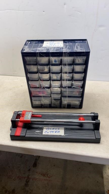 26 DRAWER ORGANIZER WITH CONTENTS AND GLASSCUTTER