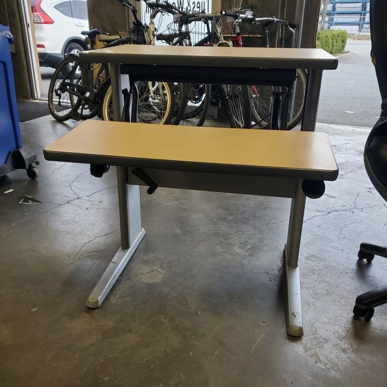 28.5 INCH HAND CRANK ADJUSTBAE HEIGHT DESK W/ ADJUSTABLE HEIGHT SHELF FOR KEYBOARD OR MONITOR