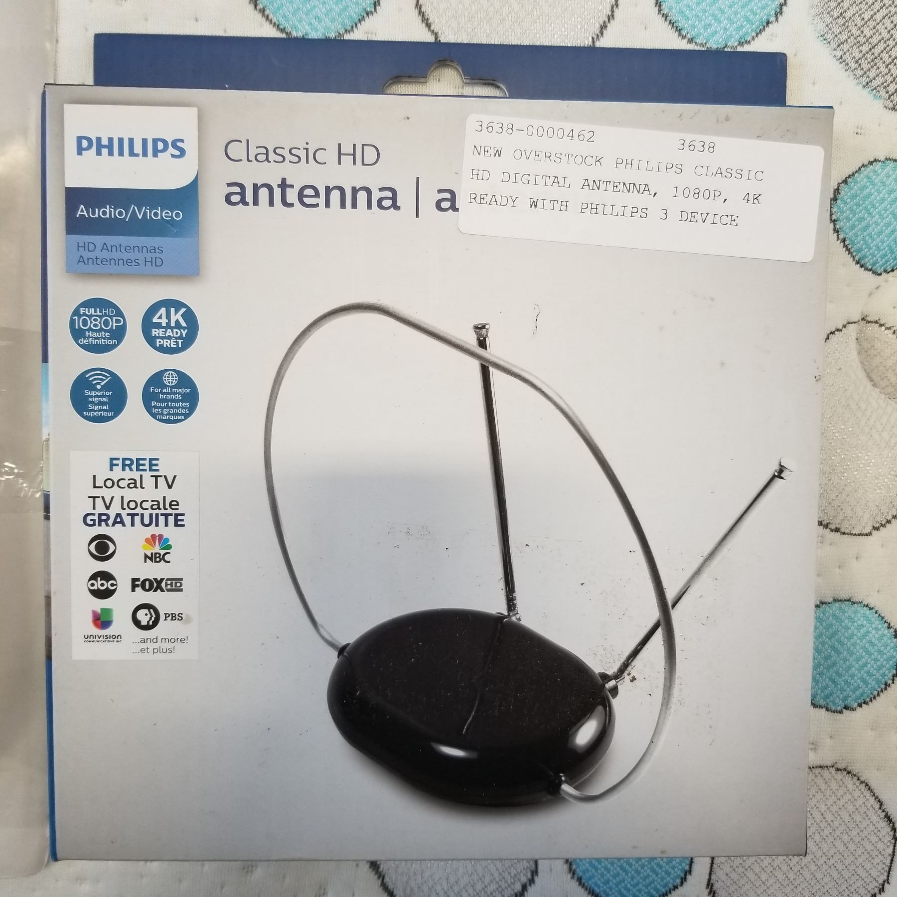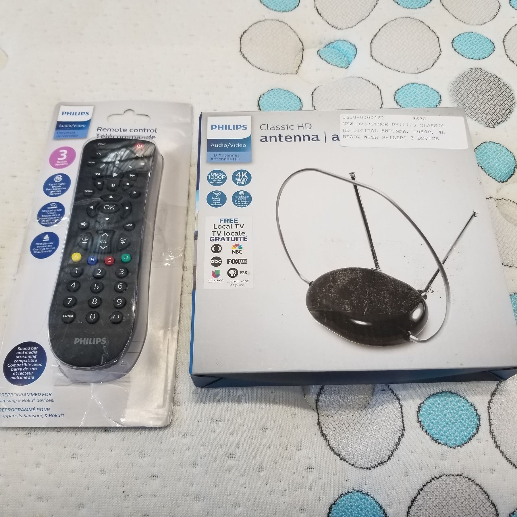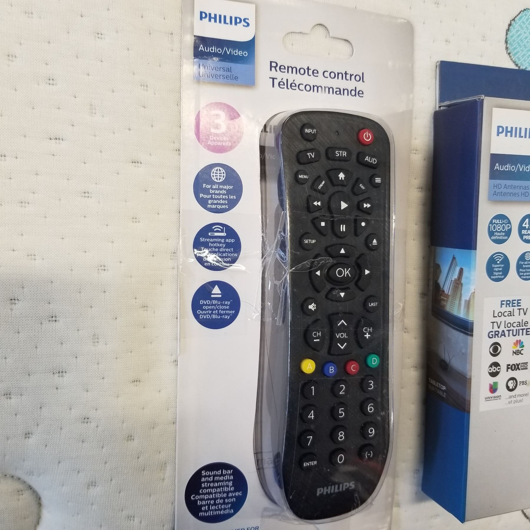 NEW OVERSTOCK PHILIPS CLASSIC HD DIGITAL ANTENNA, 1080P, 4K READY WITH PHILIPS 3 DEVICE UNIVERSAL REMOTE