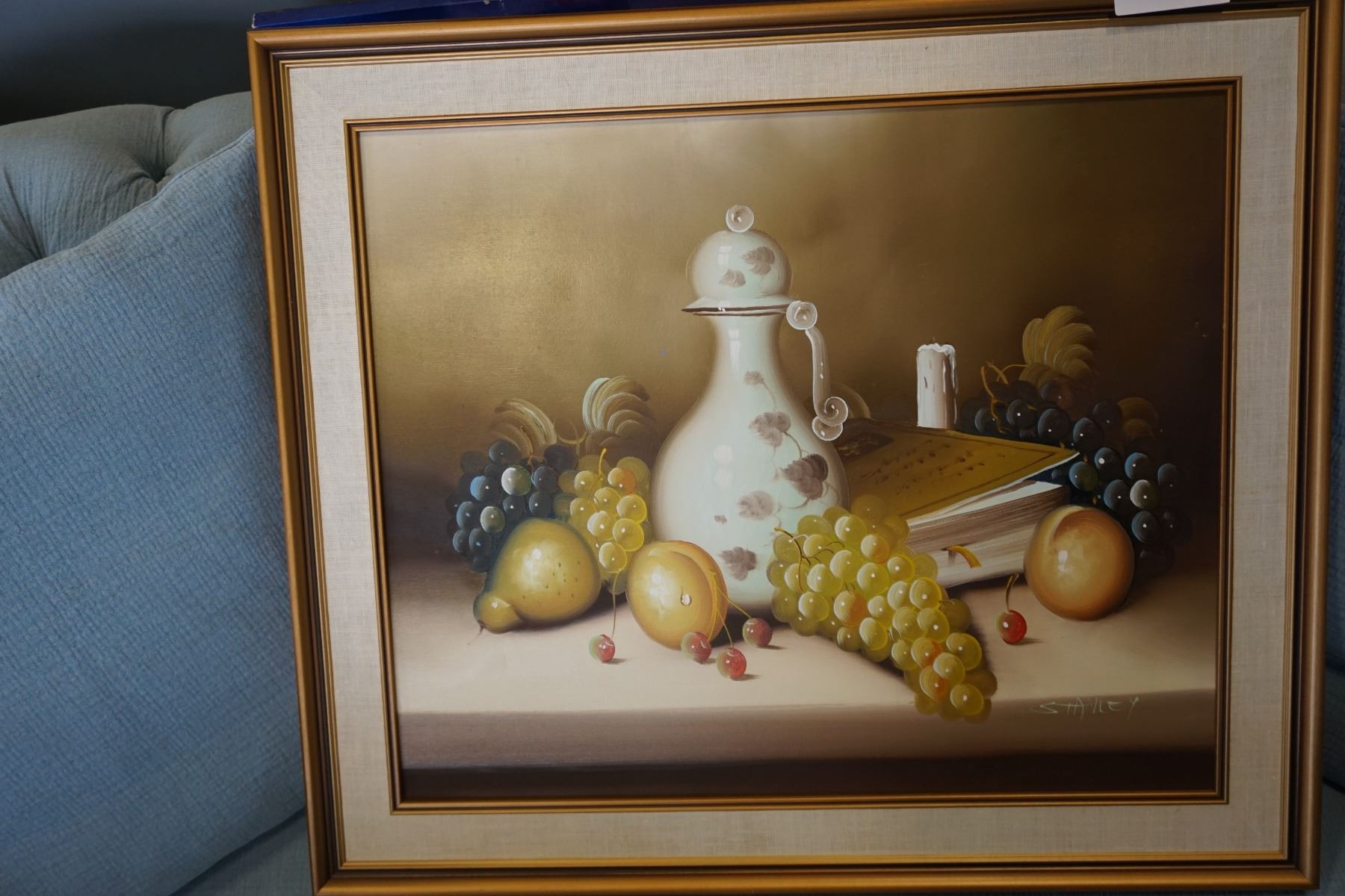 29 x 25 STANLEY SIGNED OIL ON CAVNAS "FRUIT OF THE VINE"