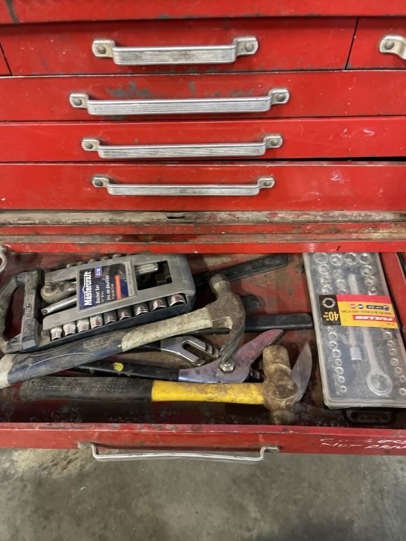 2PC RED TOOL CHEST WITH ASSORTED TOOL CONTENTS