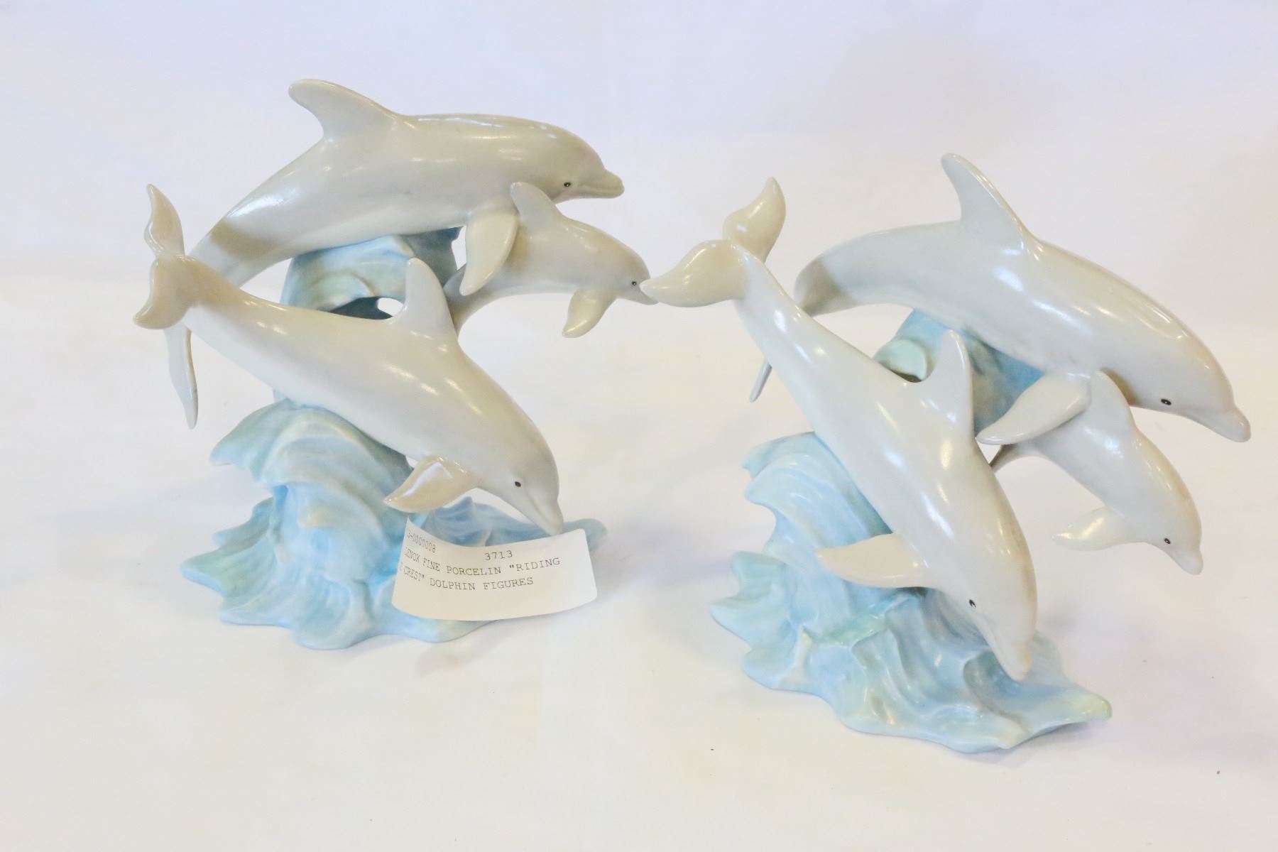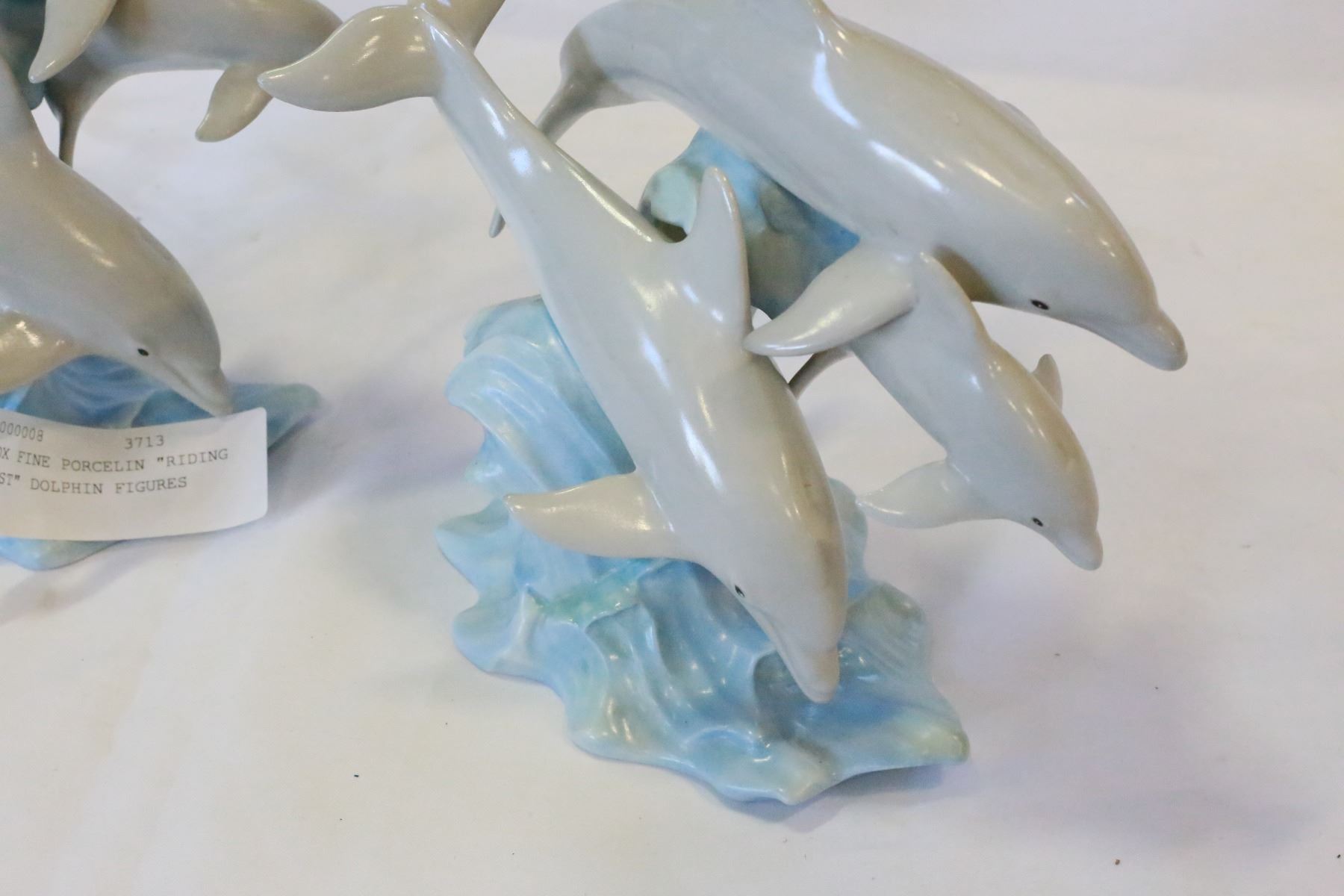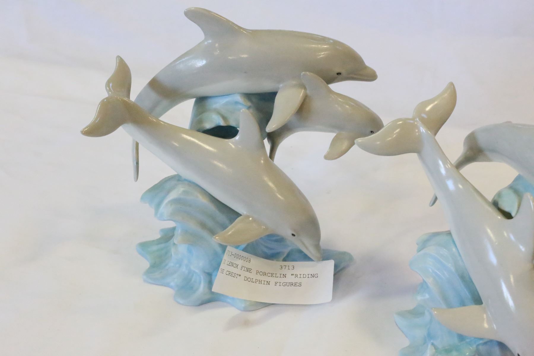 2X LENOX FINE PORCELIN "RIDING THE CREST" DOLPHIN FIGURES