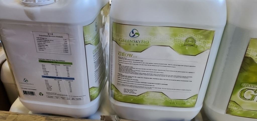 3 - 10 liter jugs of Green Sky Grow plant liquid nutrient