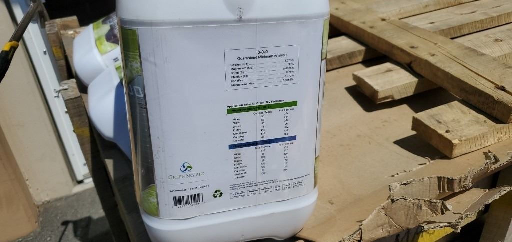 3-10 liter jugs of green sky bio Cal Mag plant food