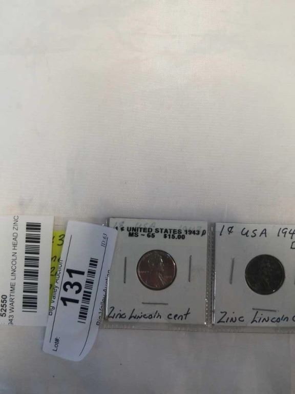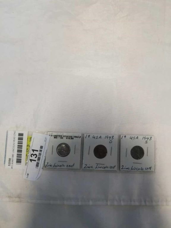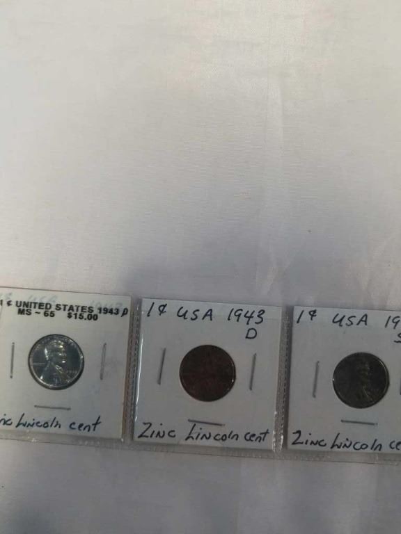 3 1943 WARTIME LINCOLN HEAD ZINC 1 CENT ALL 3 MINTS PHILADELPHIA, DENVER, SAN FRANSICO