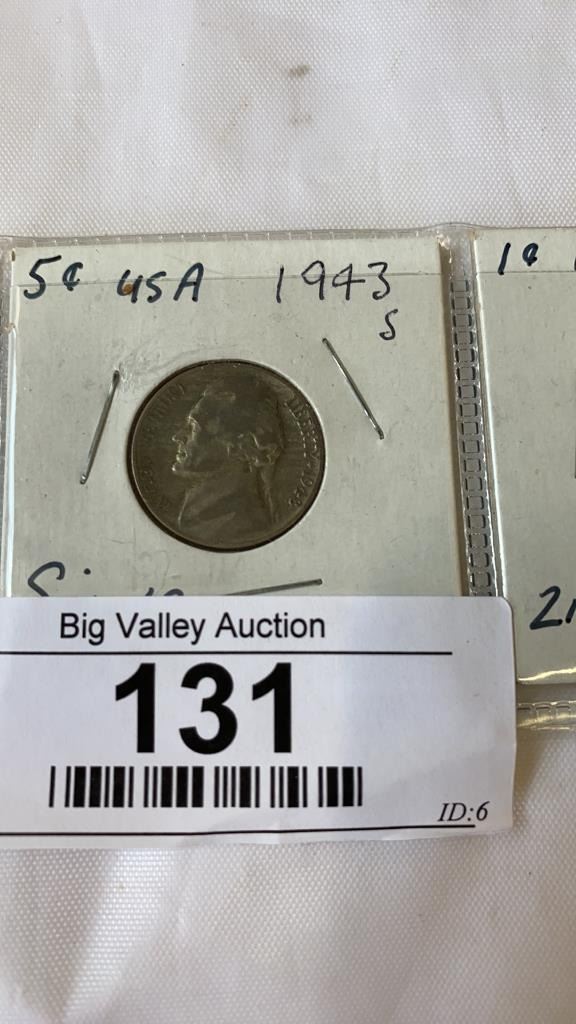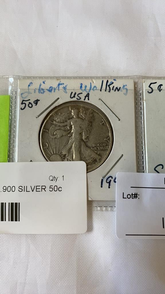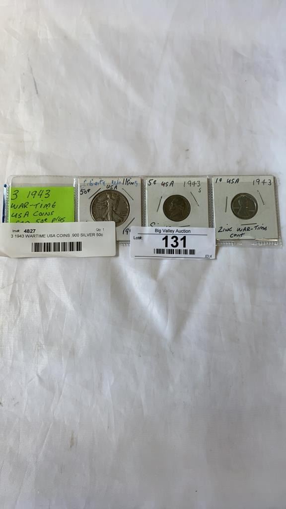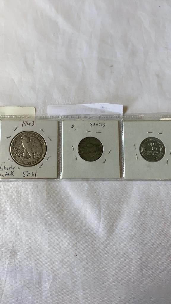 3 1943 WARTIME USA COINS .900 SILVER 50c PLUS SILVER 5c AND ZINC CENT