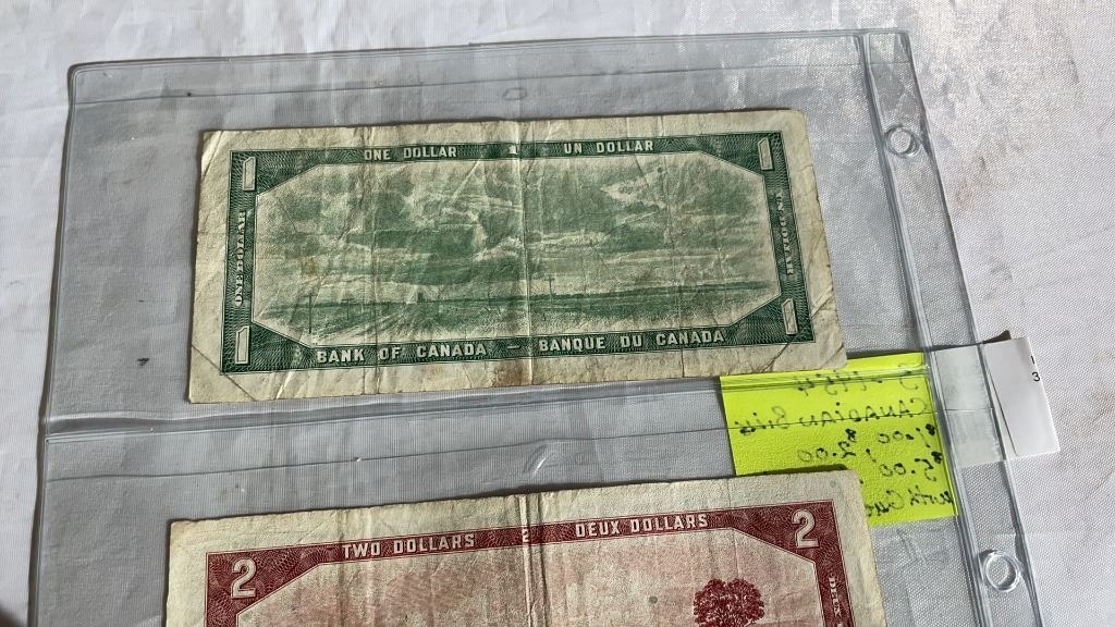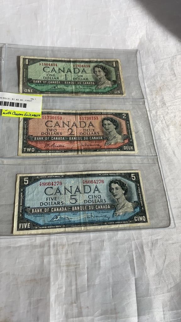 3 1954 CANADIAN BILLS - $1, $2, $5 - FIRST BILLS WITH QUEEN ELIZABETH