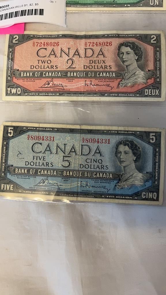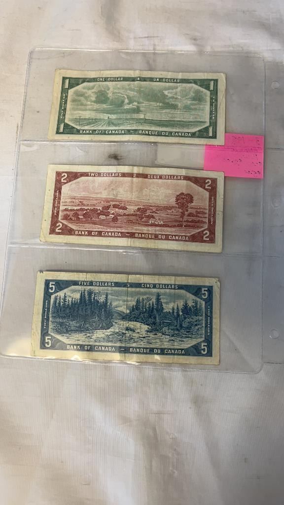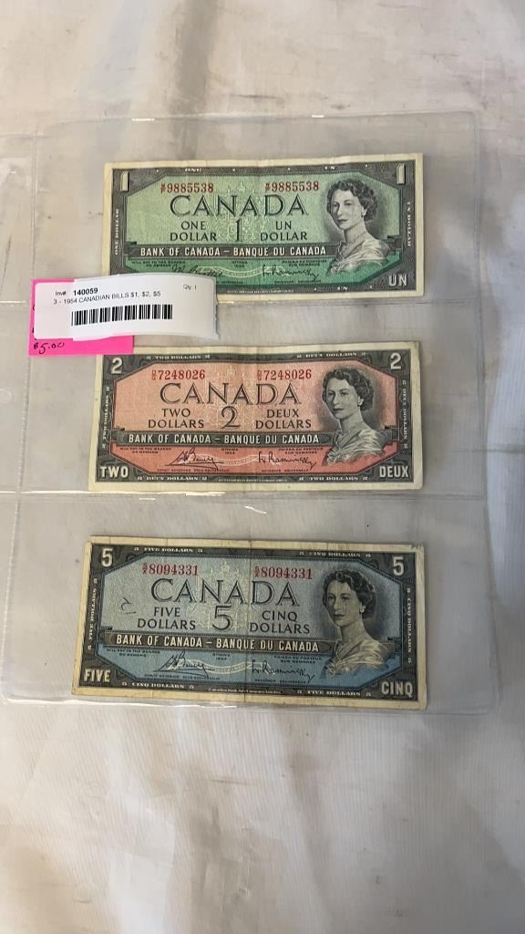 3 - 1954 CANADIAN BILLS $1, $2, $5