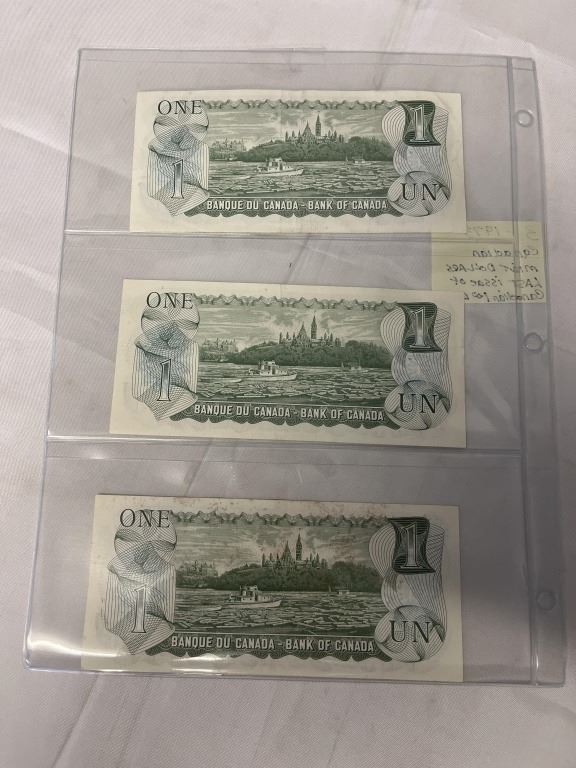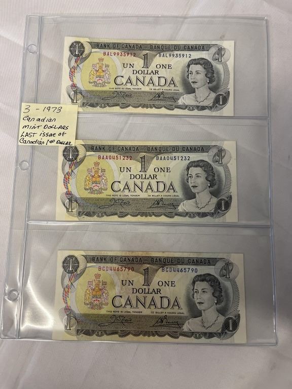 3 - 1973 CANADIAN MINT DOLLARS, LAST YEAR OF $1 BILL