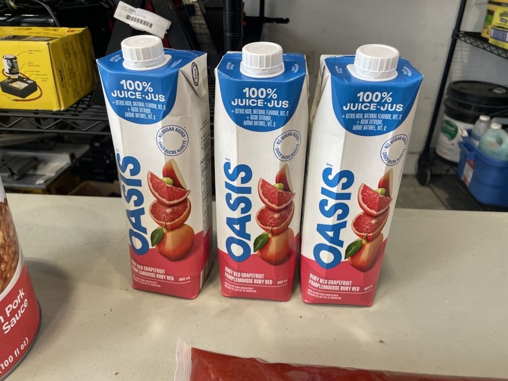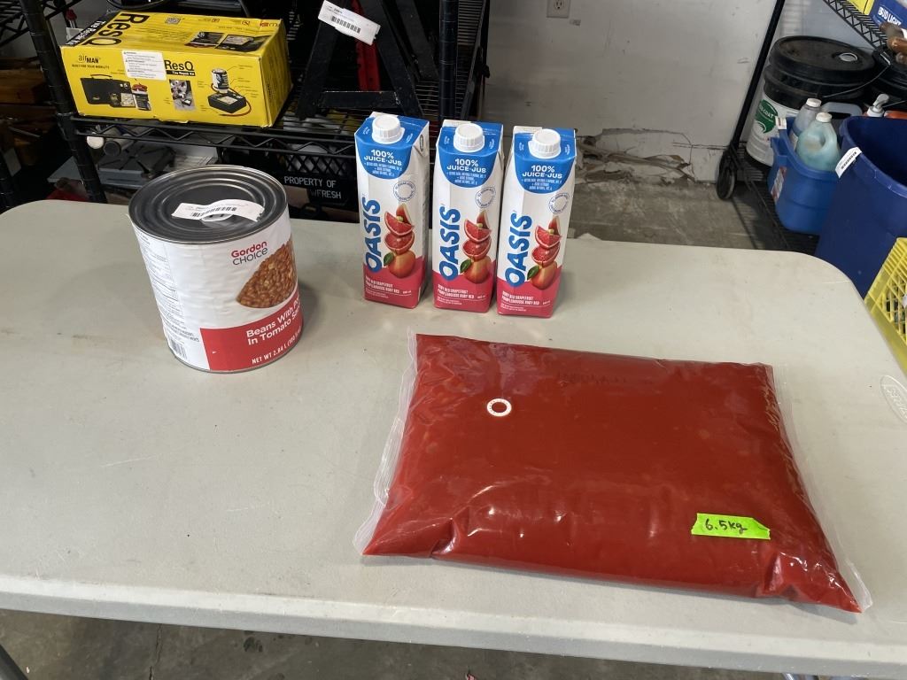 3.5KG BAG OF KETCHUP, 3L GRAPEFRUIT JUICEE, AND 2.84L CAN OF BEANS