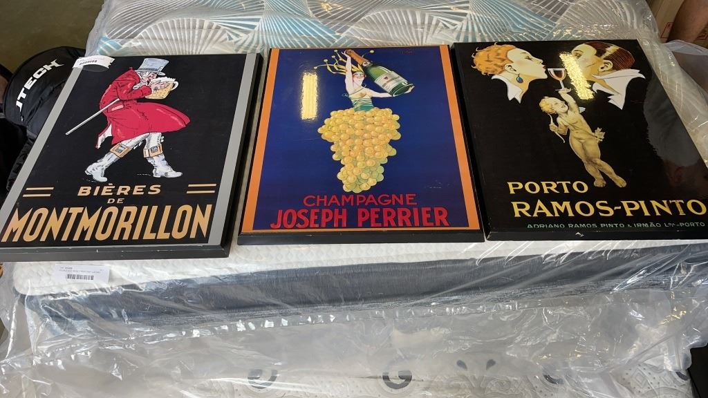 3 ADVERTISEMENT PRINTS - PORTO RAMOS PINTO WINE, MONTMORILLON WINE AND JOSEPH PERRIER CHAMPAGNE
