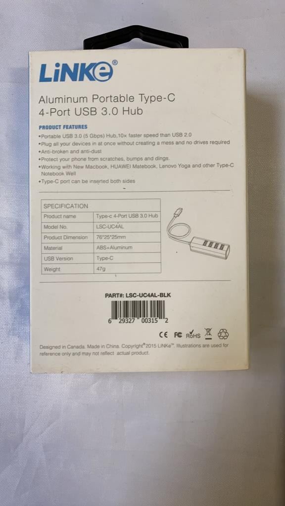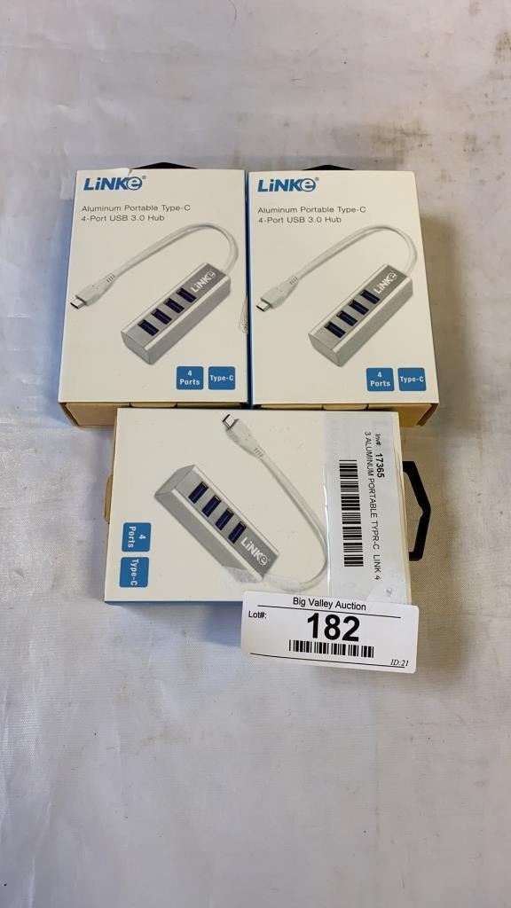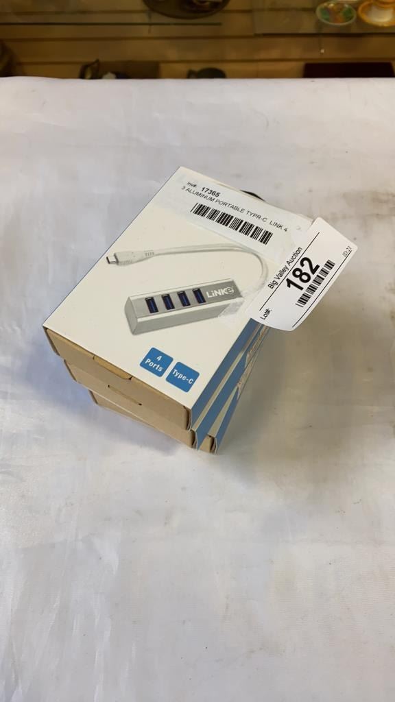 3 ALUMINUM PORTABLE TYPR-C LINK 4 PORT USB 3.0 HUB RETAIL $30EA