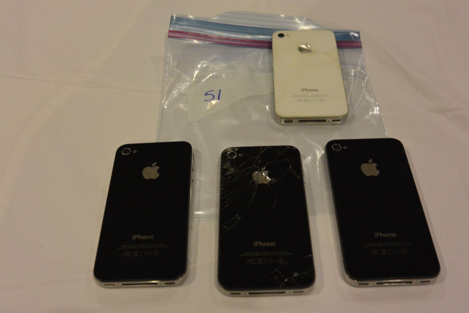 3 APPLE IPHONE 4 BLACK FIDO AND WHITE 4S KOODO, PREVIEW STRONGLY RECOMMENDED, ALL ITEMS ARE FINAL SALE, BUYER BEWARE, ITEMS MAY BE FOR PARTS OR REPAIR
