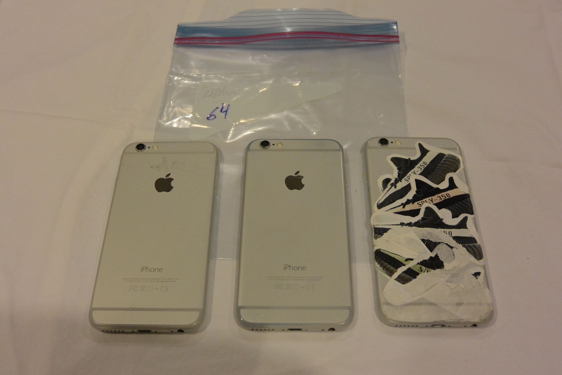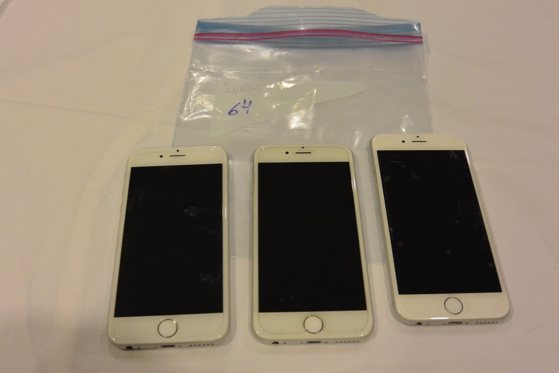 3 APPLE IPHONE 6 WHITE CHATR AND FIDO, PREVIEW STRONGLY RECOMMENDED, ALL ITEMS ARE FINAL SALE, BUYER BEWARE, ITEMS MAY BE FOR PARTS OR REPAIR
