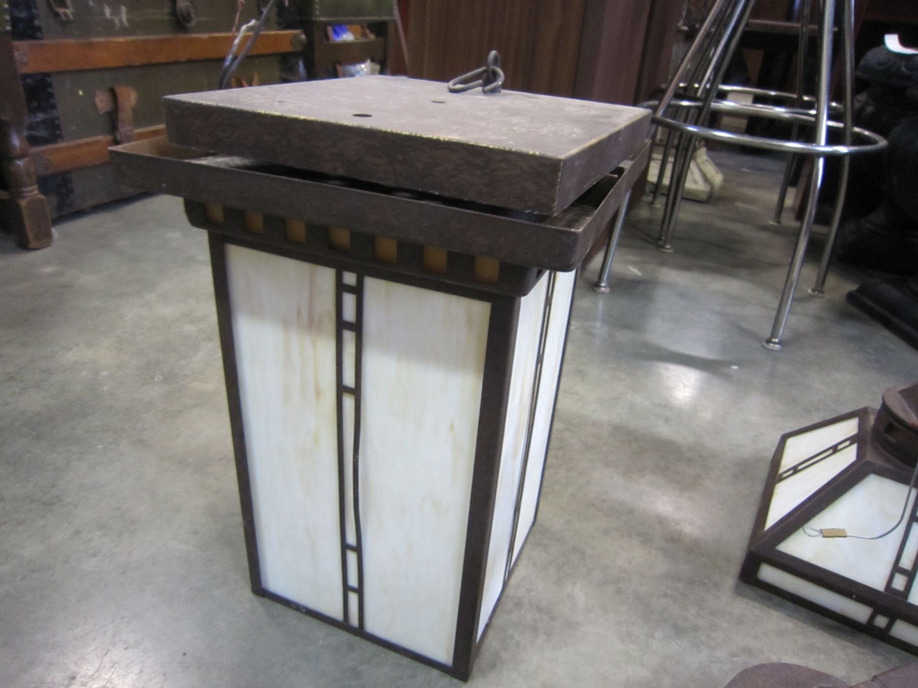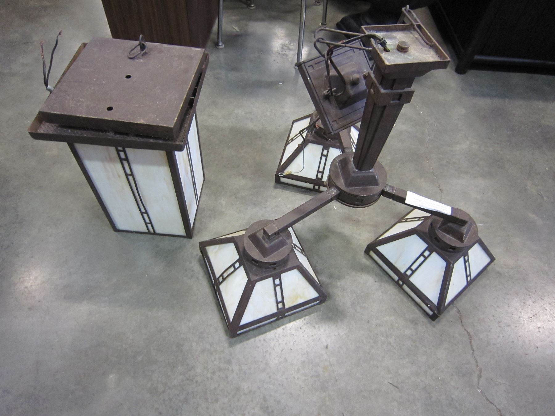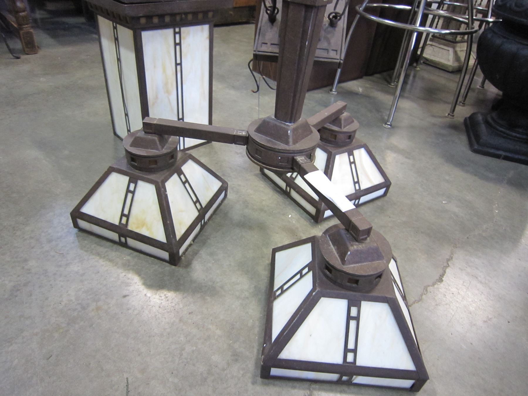 3 ARMED STAINLESS GLASS LIGHT FIXTURE AND MATCHING ENTRANCE LIGHT