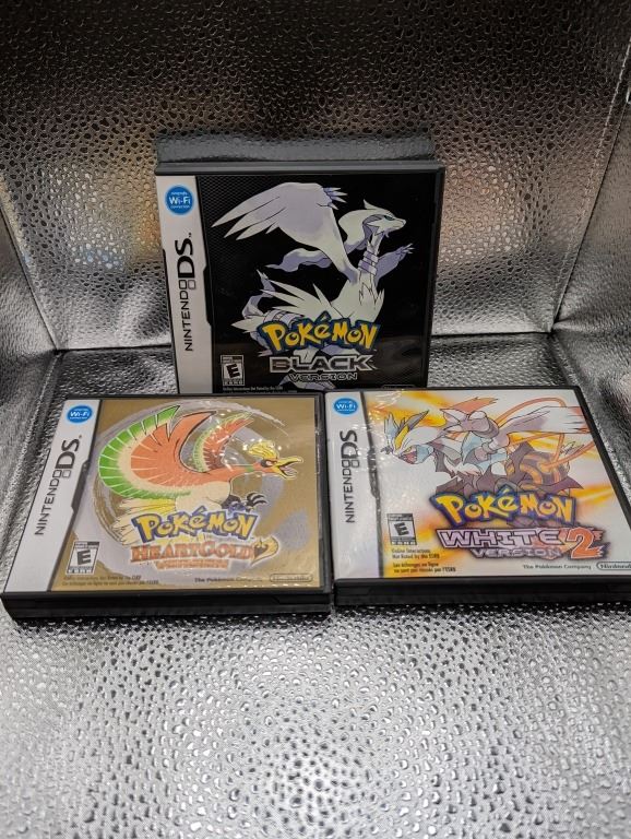 3 AS NEW POKEMON NINTENDO DS GAMES WHITE VERSION 2, HEART GOLD AND BLACK
