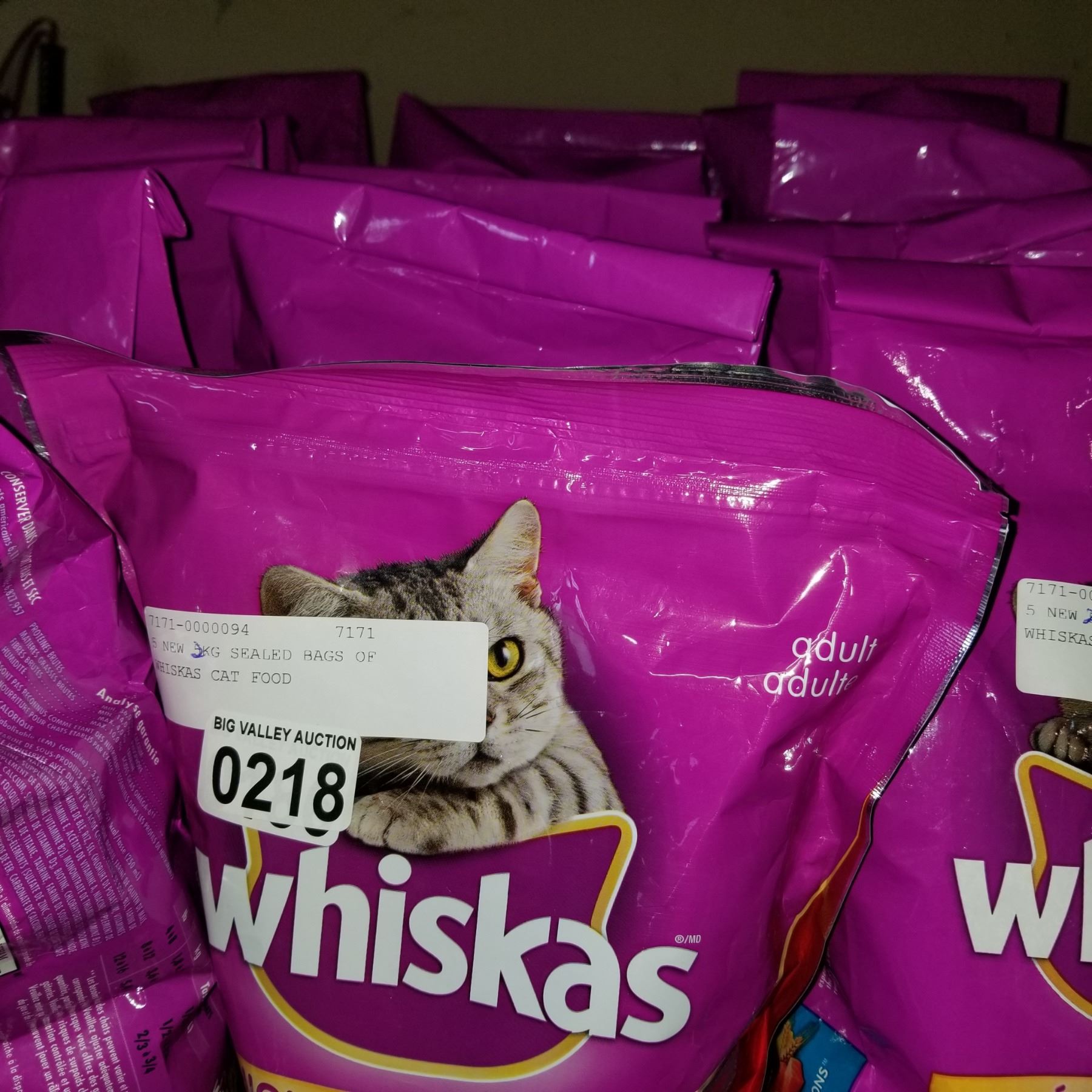 3 BAGS OF 2KG AND 1 BAG OF 1KG WHISKAS CAT FOOD