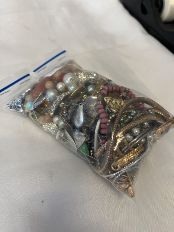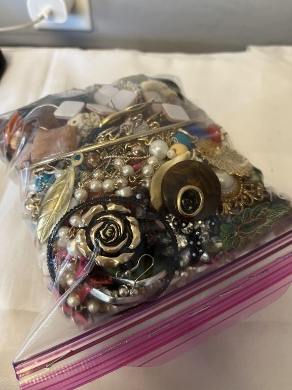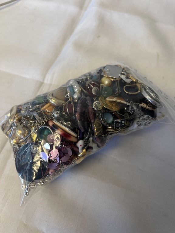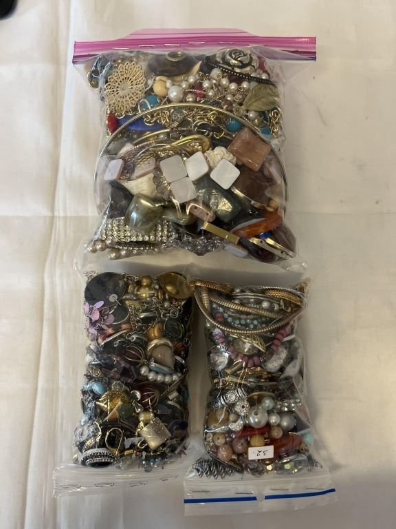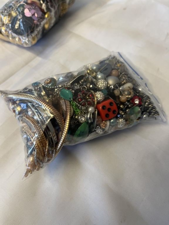 3 BAGS OF MISC JEWELRY, PARTS, BEADS ETC