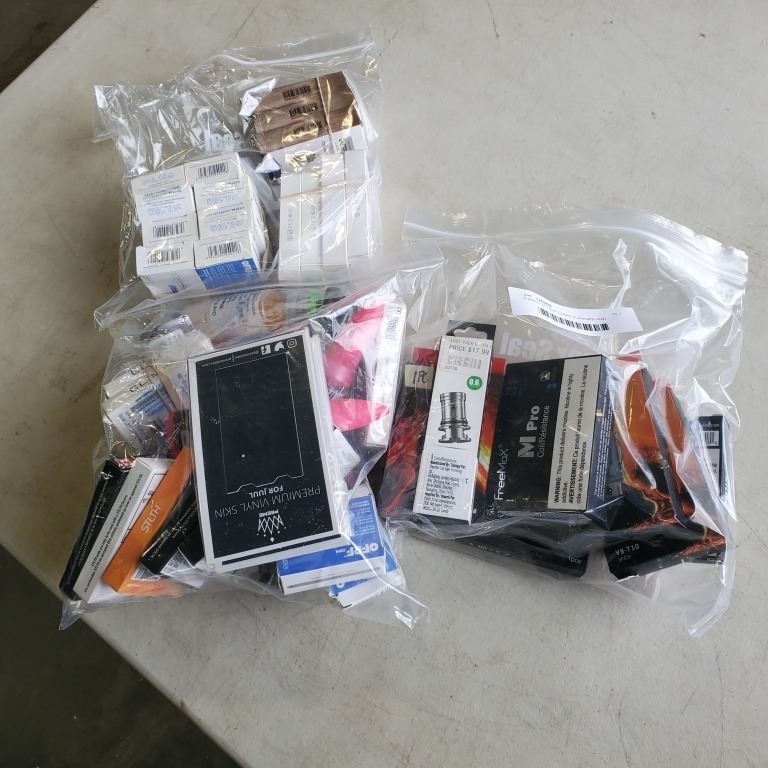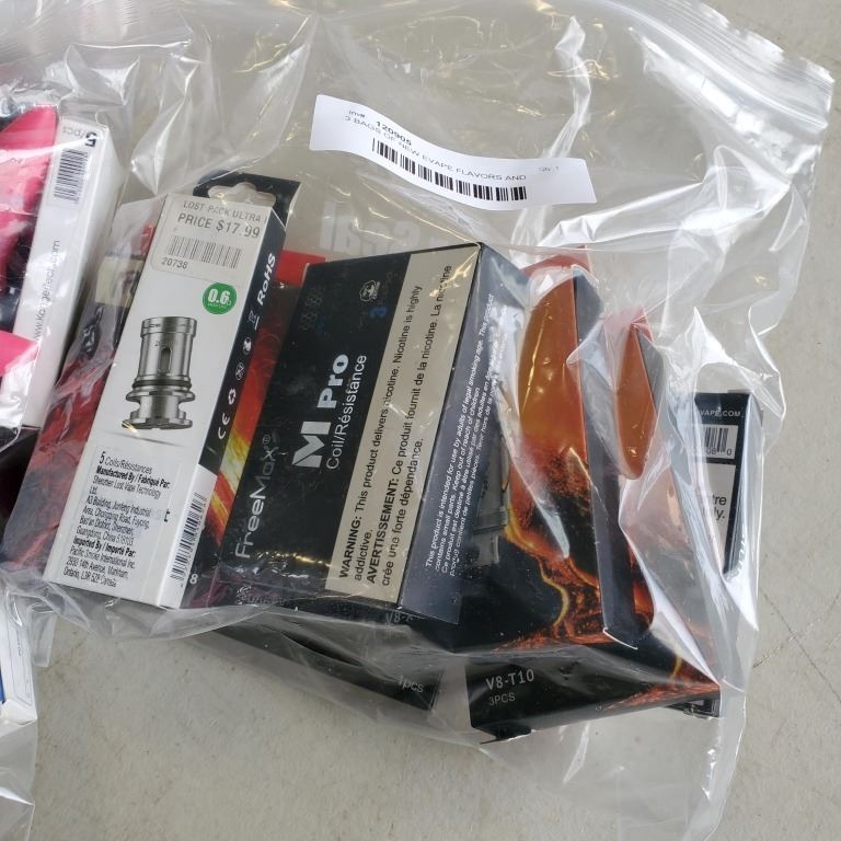 3 BAGS OF NEW EVAPE FLAVORS AND ACCESSORIES