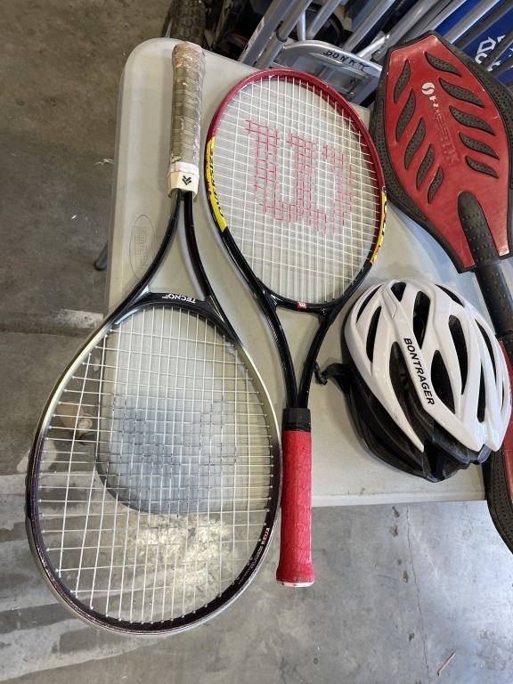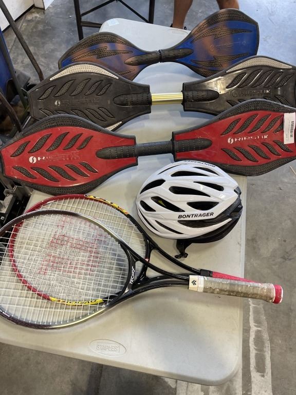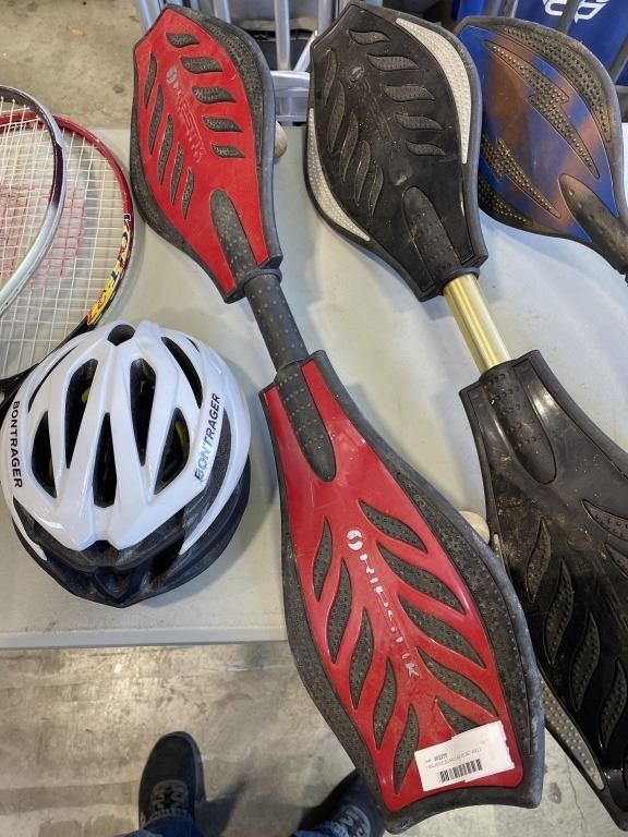 3 BALANCE BOARDS AND HELMET AND 2 TENNIS RACKETS