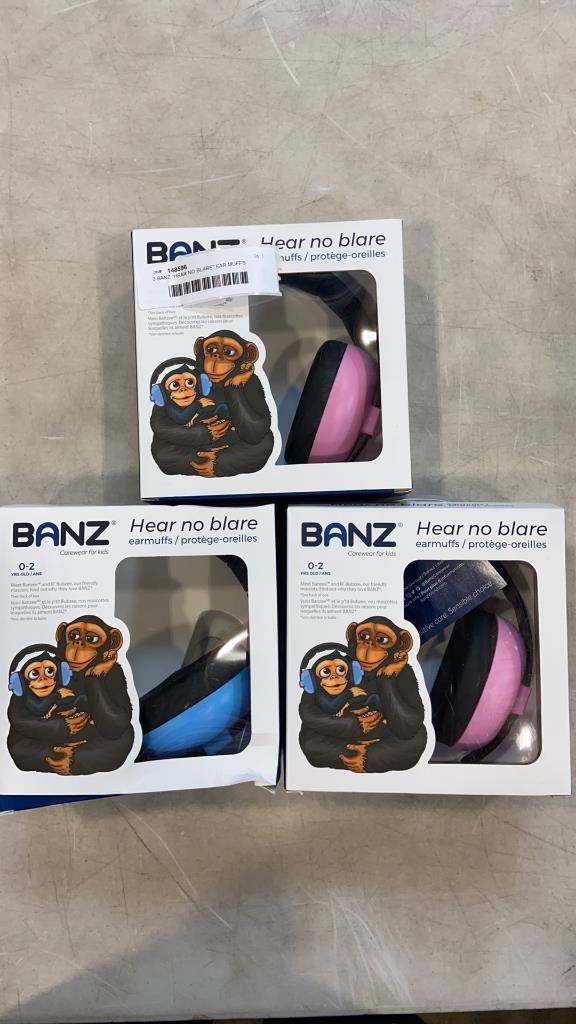 3 BANZ "HEAR NO BLARE" EAR MUFFS