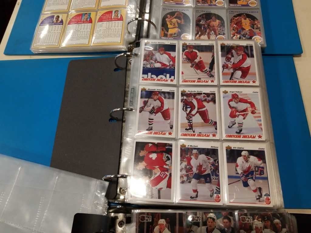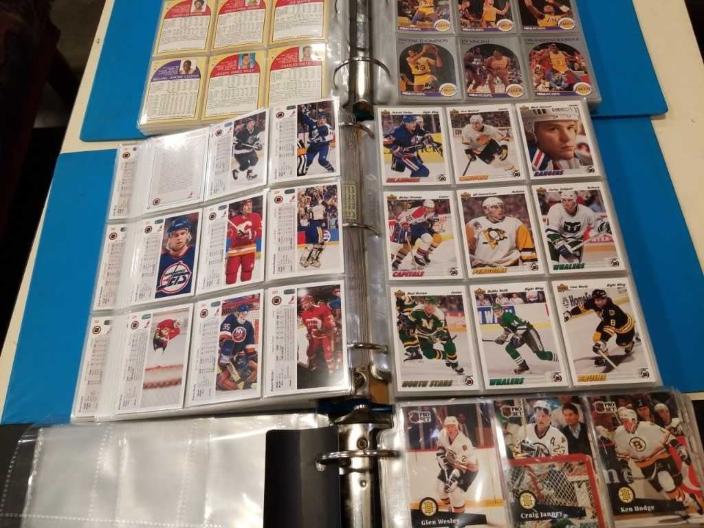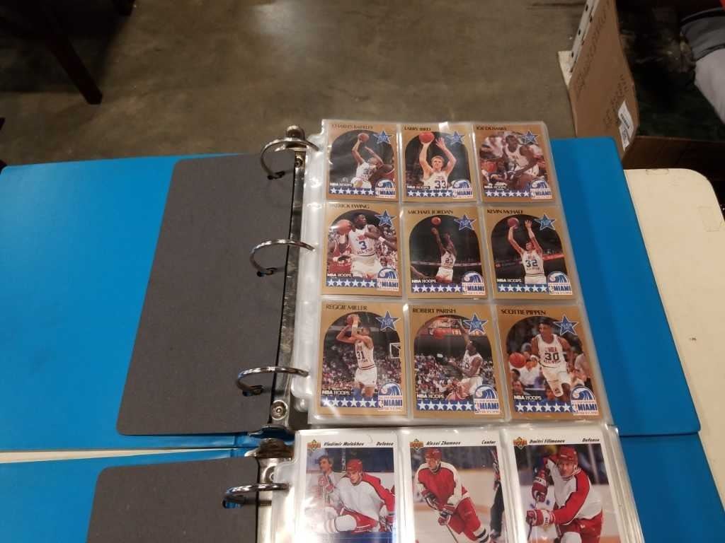 3 BINDERS UPPERDECK, PROSET AND HOOPS - 2 HOCKEY ONE BASKETBALL CARDS