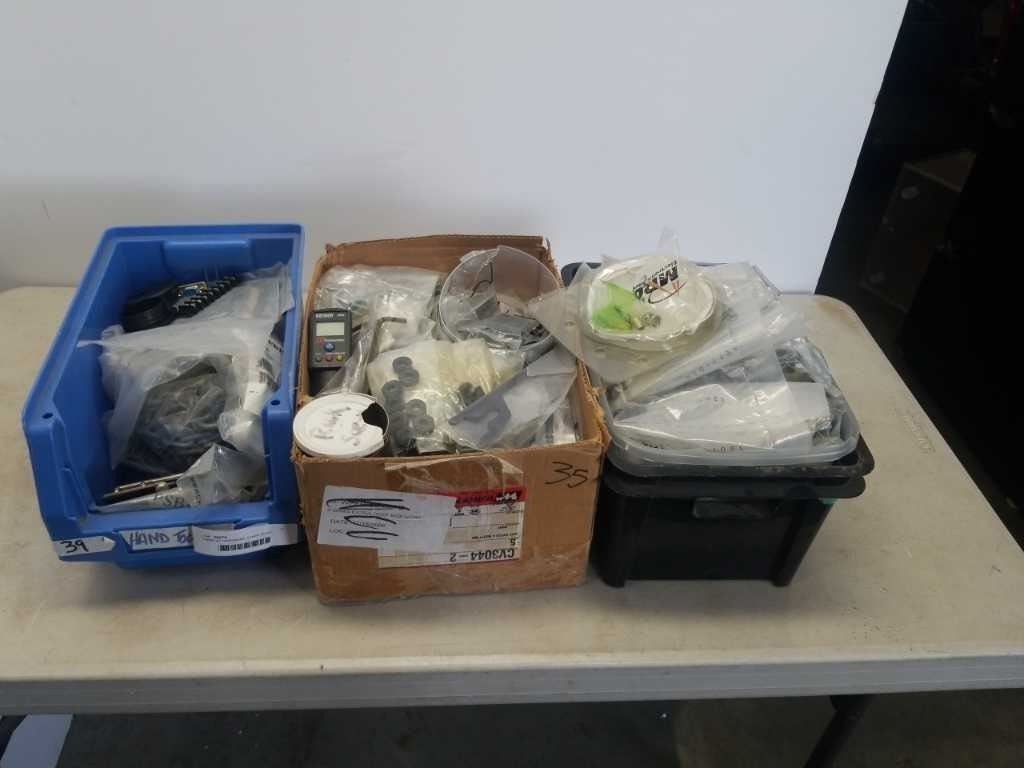 3 BINS OF HARDWARE, CHAIN, SHOP SUPPLIES