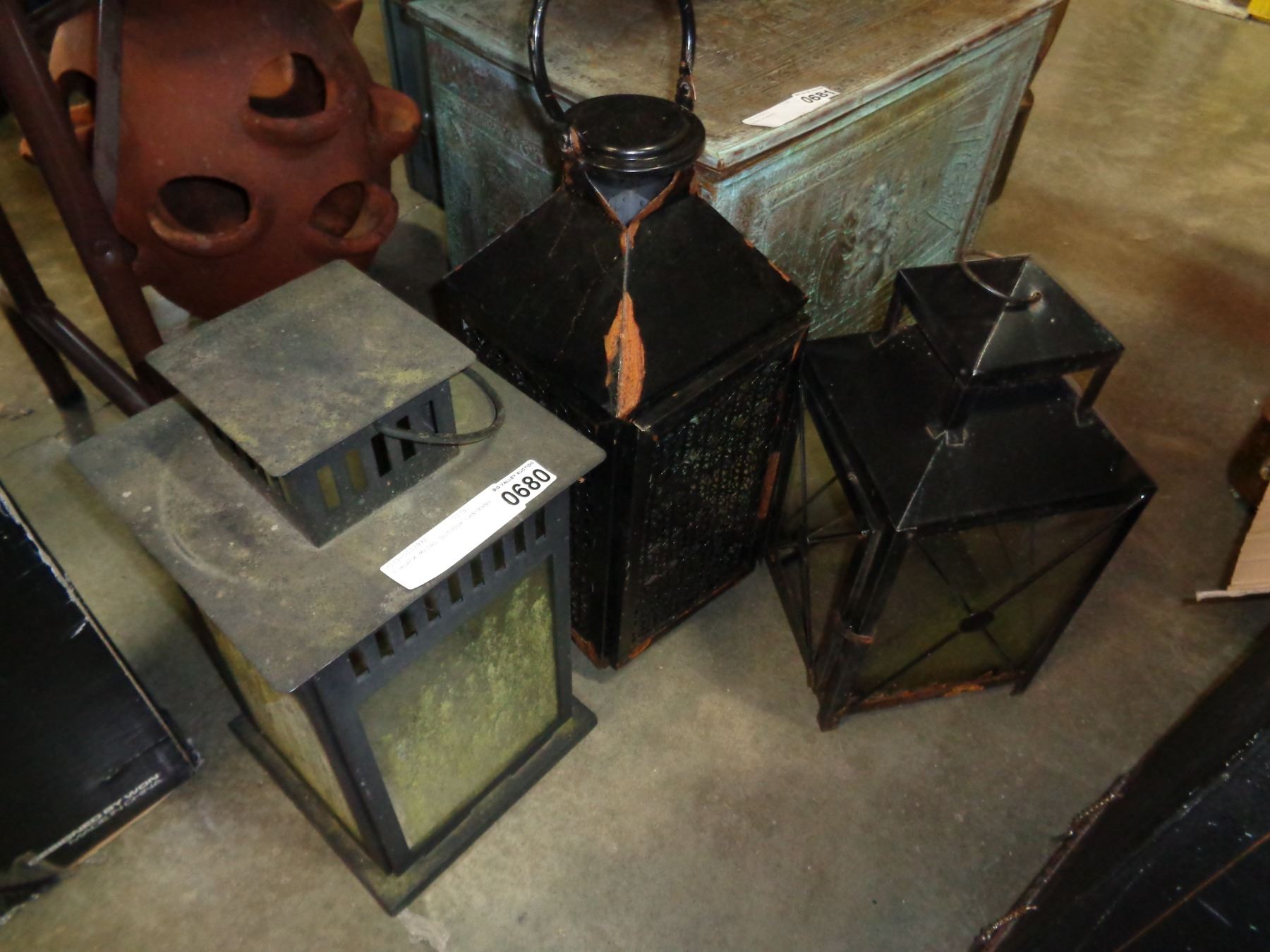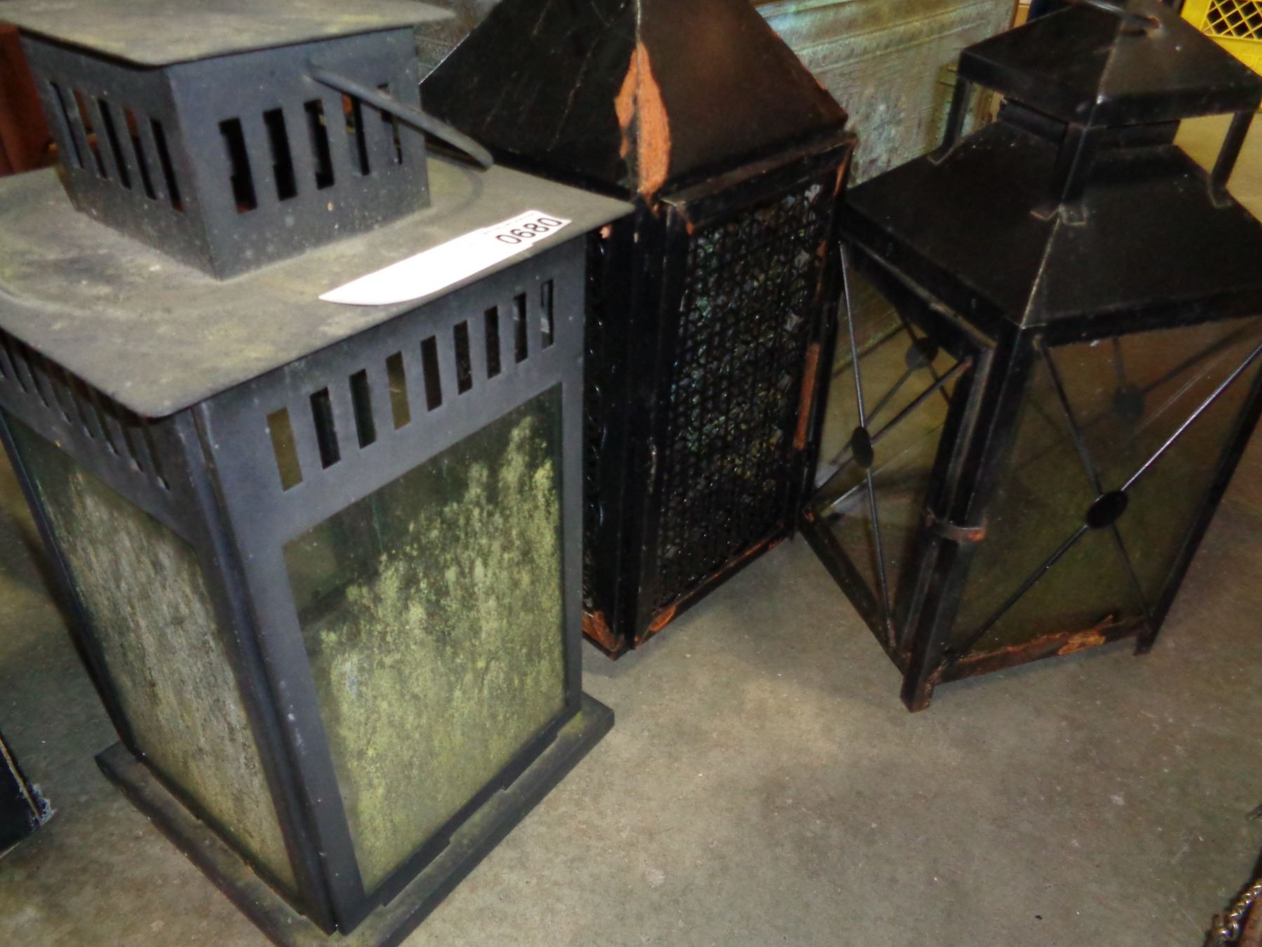 3 BLACK METAL OUTDOOR LANTERNS