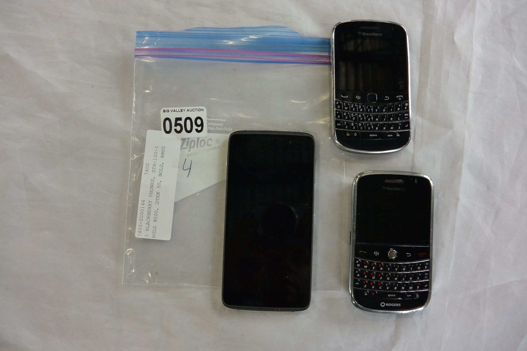 3 BLACKBERRY PHONES, STH-100-1 BOLD 9000, DTEK 50, BOLD, 9900