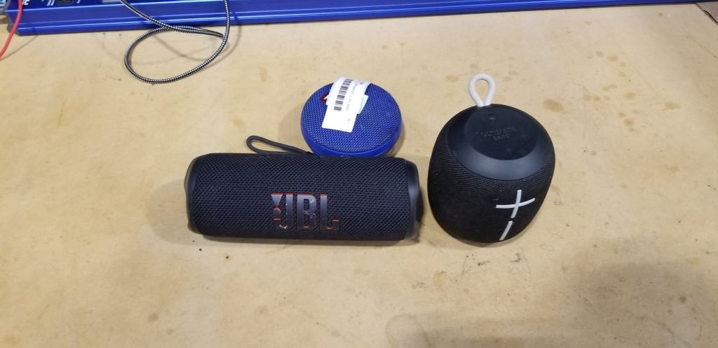 3 BLUETOOTH SPEAKERS, 2 JBL AND ULTIMATE EARS
