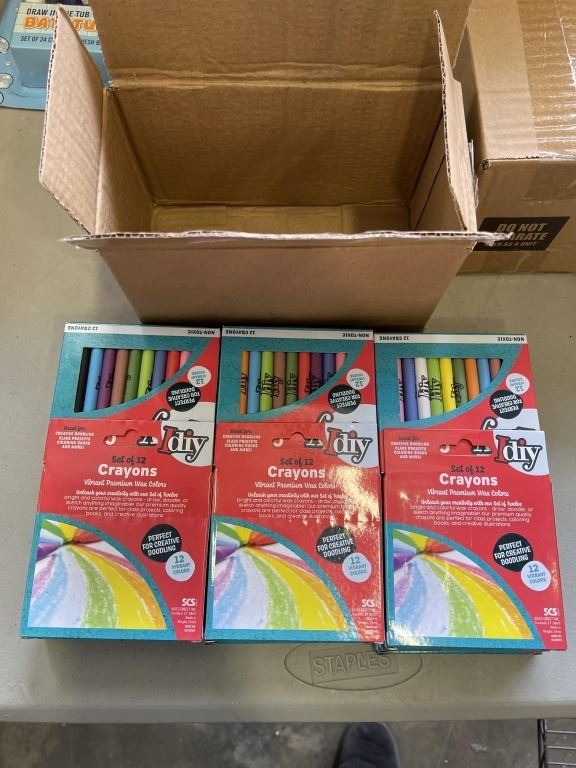 3 BOXES IDIY INDV WRAPED BOXES (12 COLORS) 24 KITS AND 24 PACK BATHTUB CRAYONS