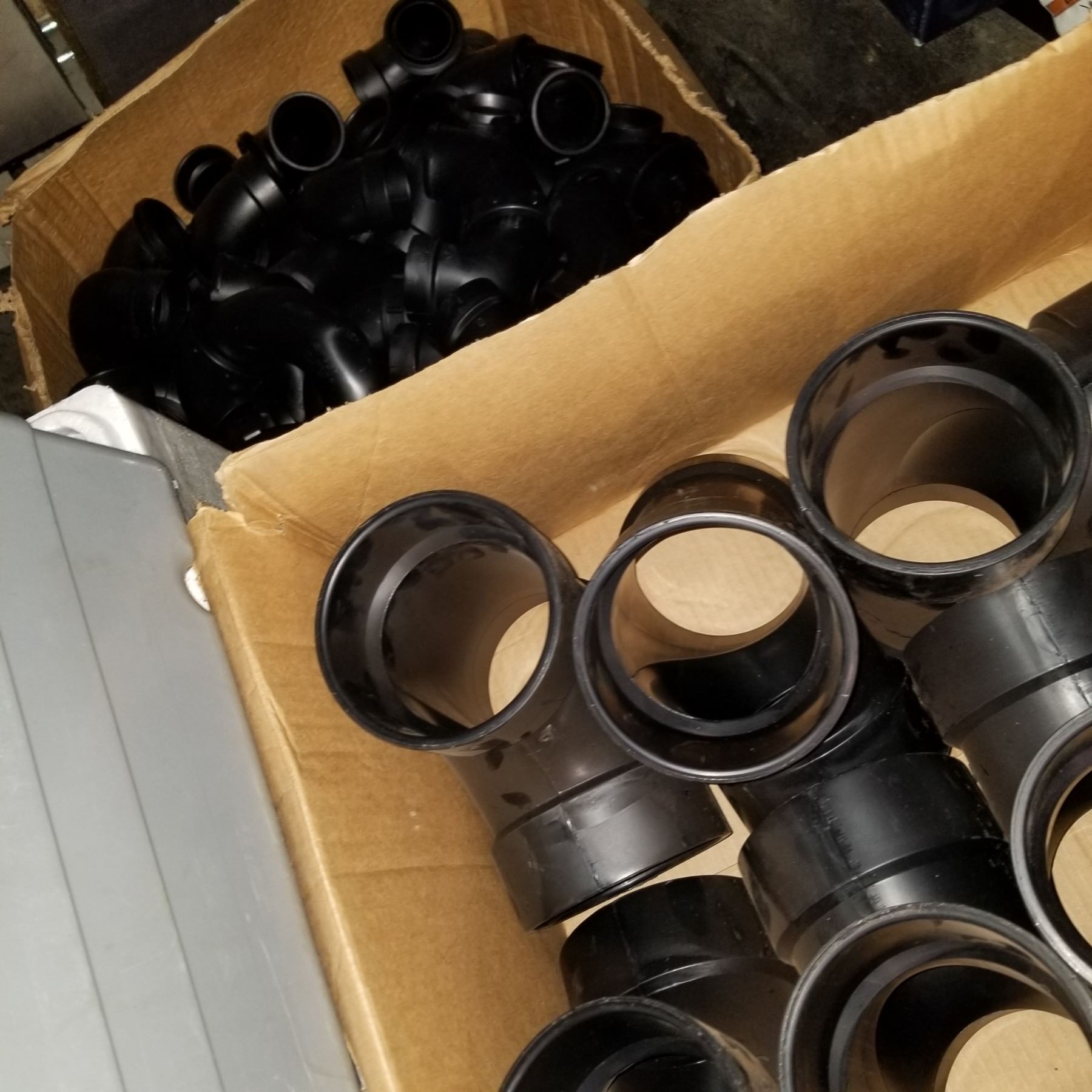 3 BOXES OF ABS PIPE ADAPTERS, PLUGS, AND FITTINGS