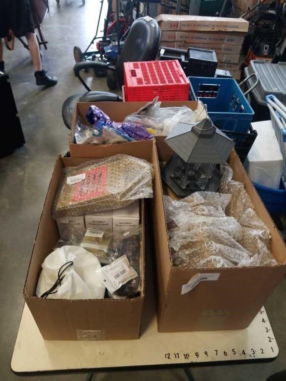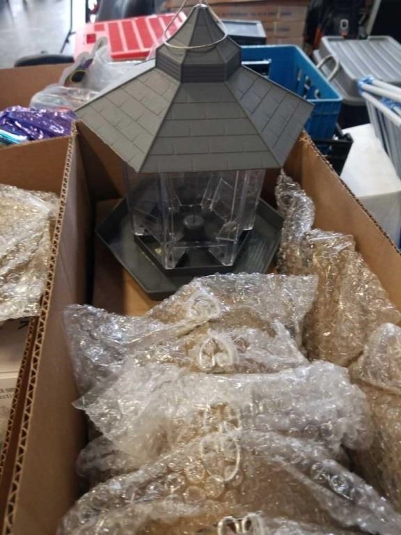3 BOXES OF BEAUTY, PARTY AND GARDEN ITEMS - BEE HOUSES, BIRD FEEDER, FACE SHIELDS