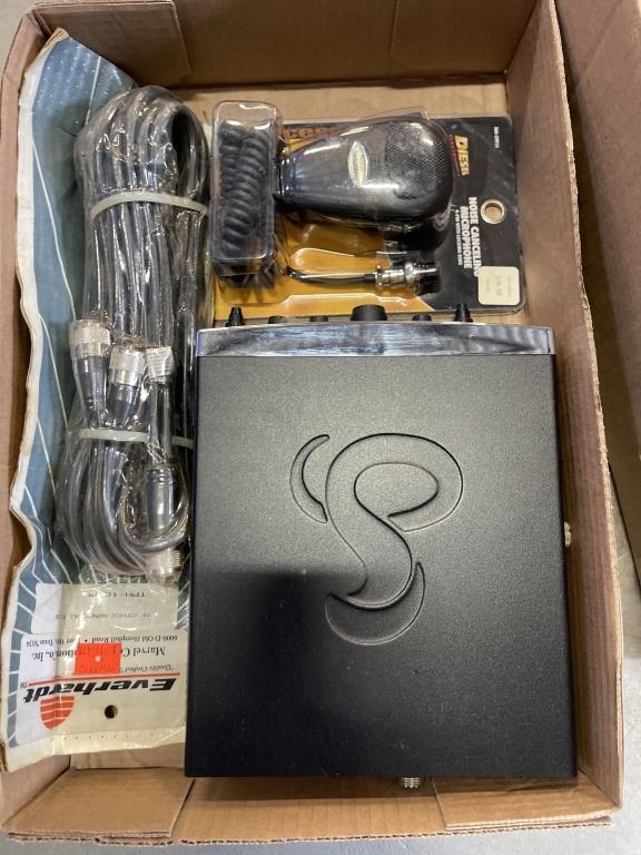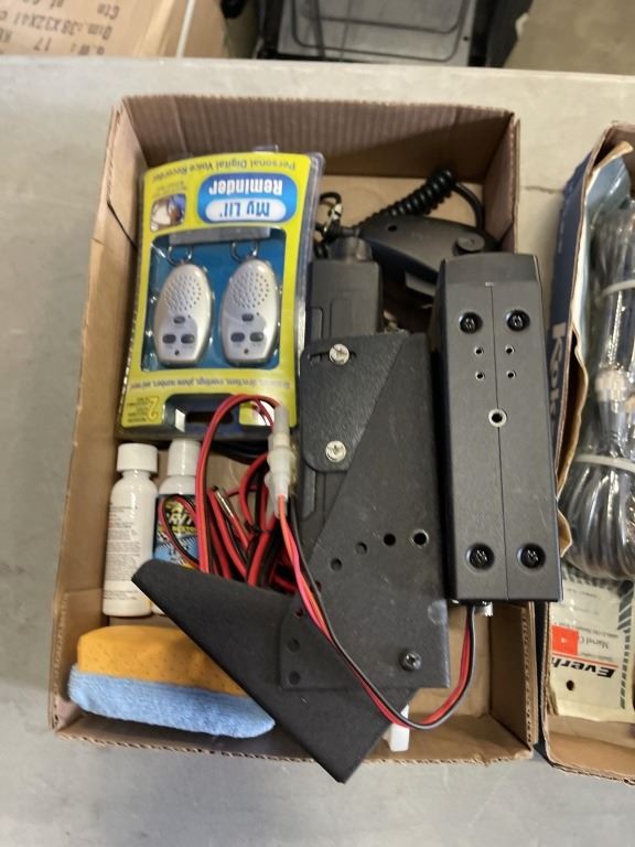 3 BOXES OF CB RADIOS, EMERGENCY LIGHT AND MORE