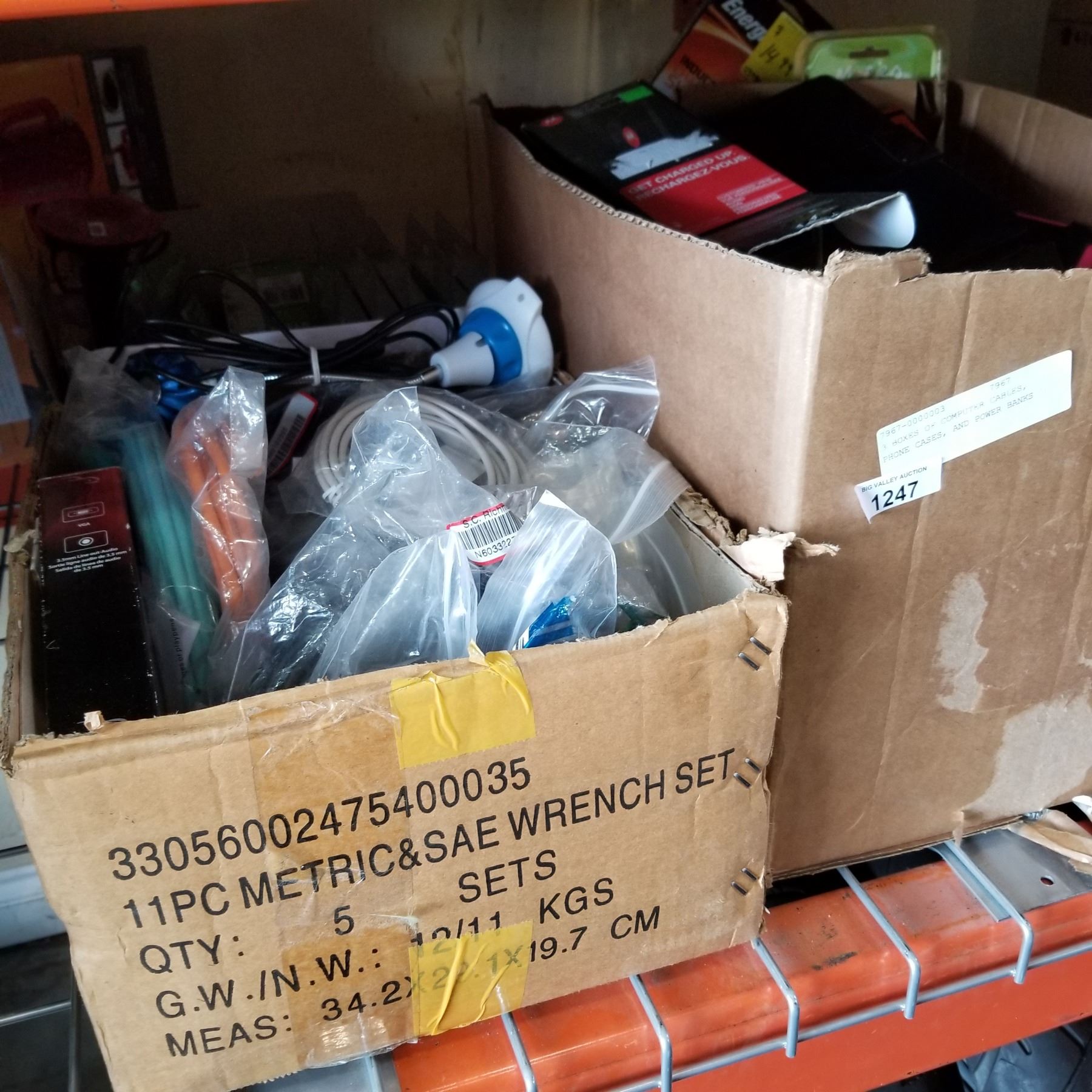3 BOXES OF COMPUTER CABLES, PHONE CASES, AND POWER BANKS