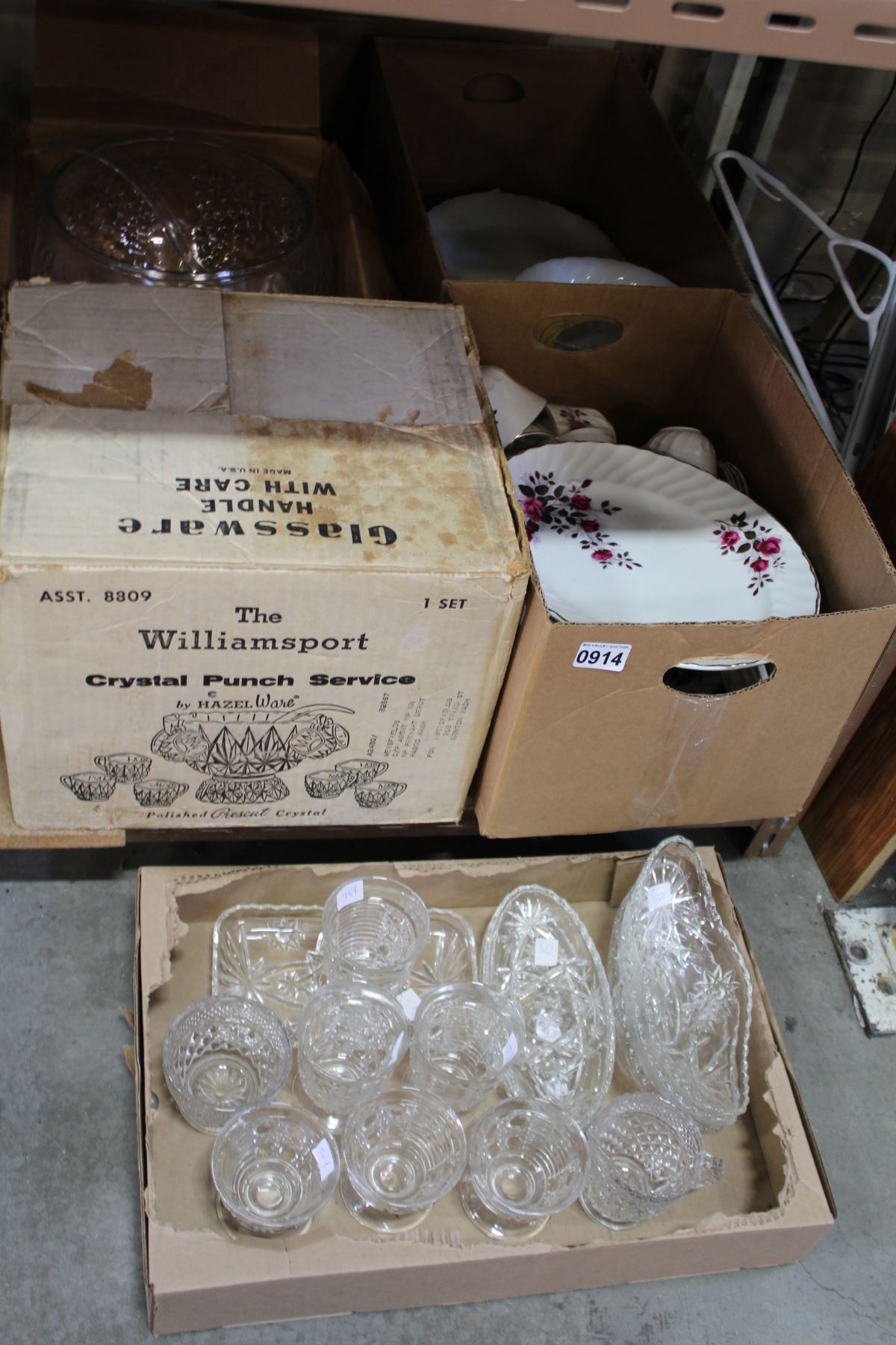 3 BOXES OF DISHES AND GLASSES HG ENGLISH IRONSTONE WARE AND MORE