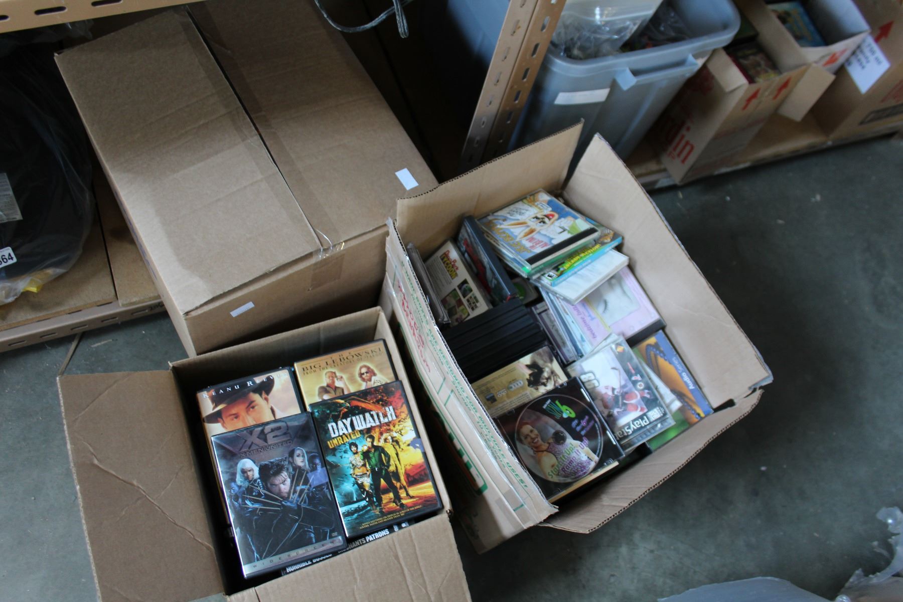 3 BOXES OF DVDS, CDS, AND MOVIES