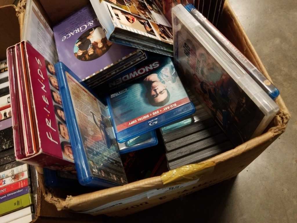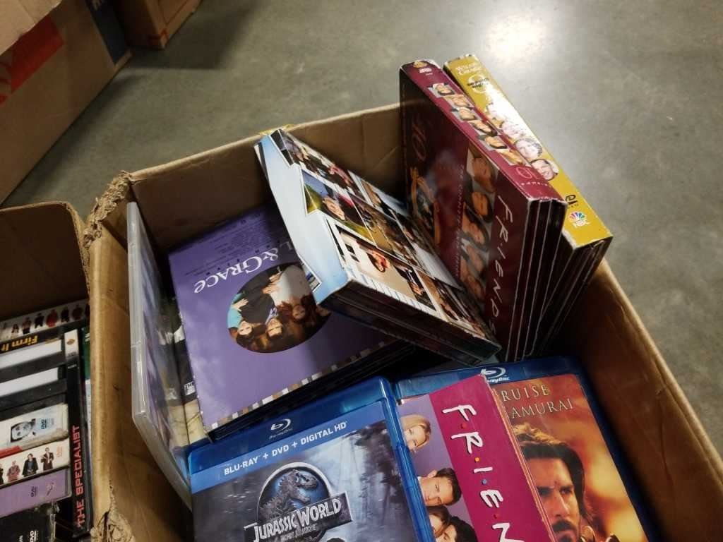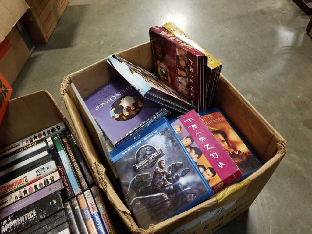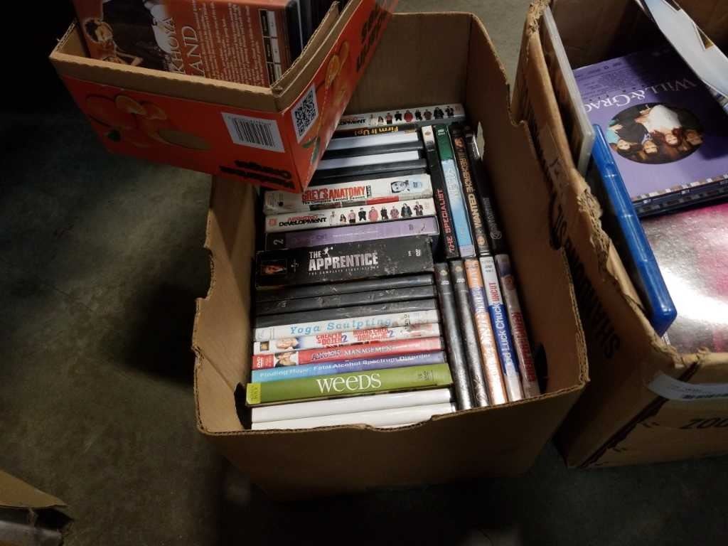 3 BOXES OF DVDS