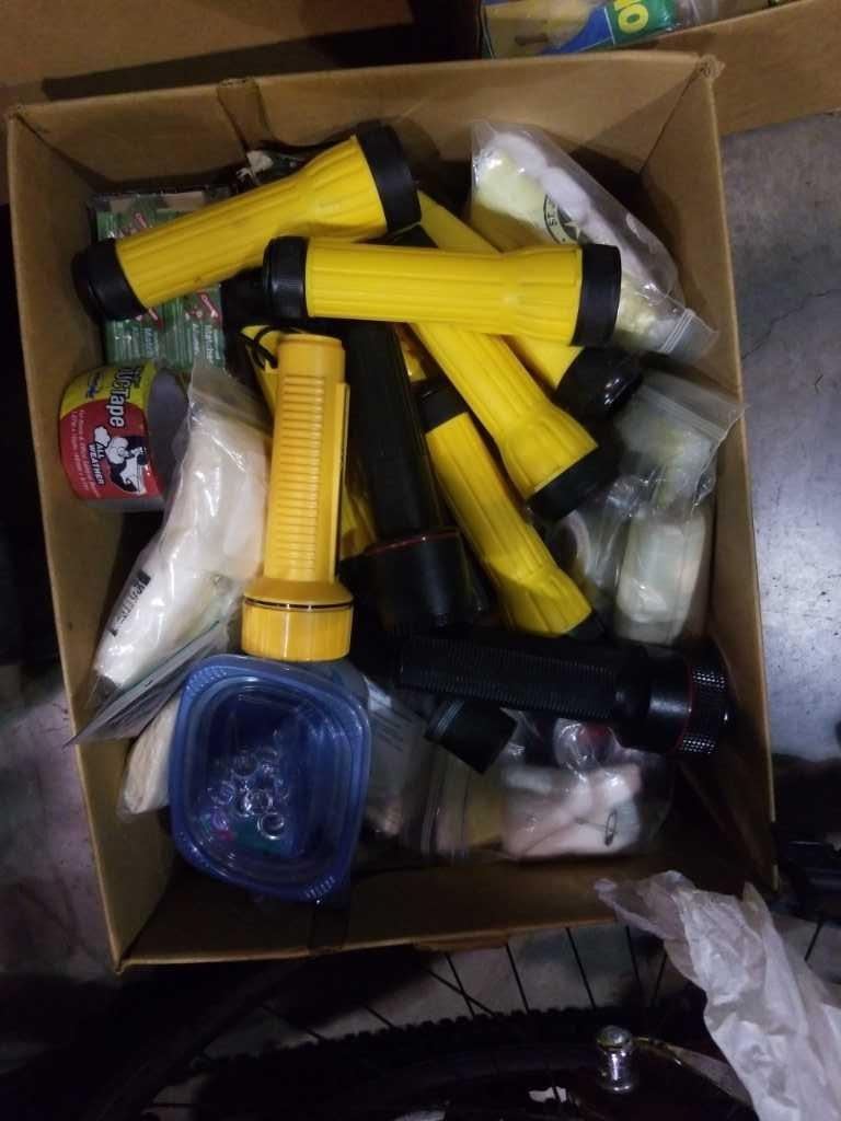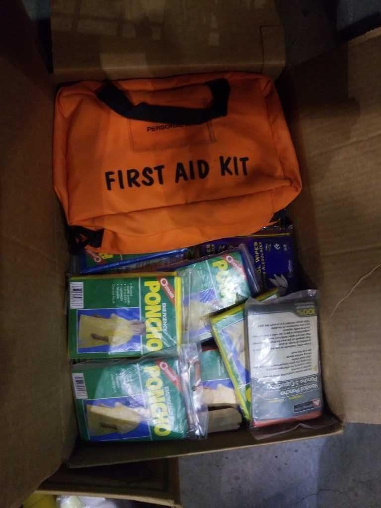 3 BOXES OF EMERGENCY BLANKETS, FIRST AID KIT, FLASHLIGHTS AND MORE