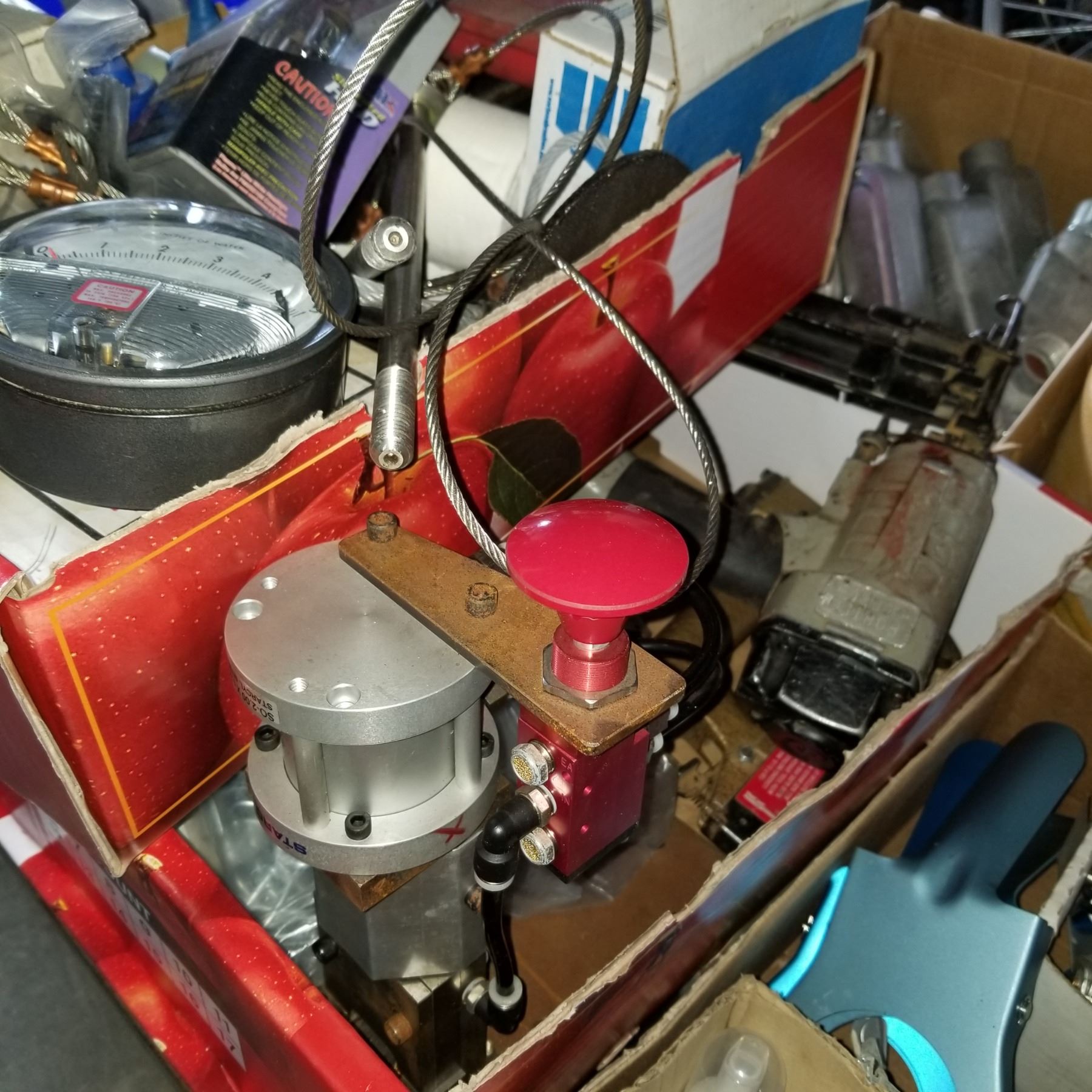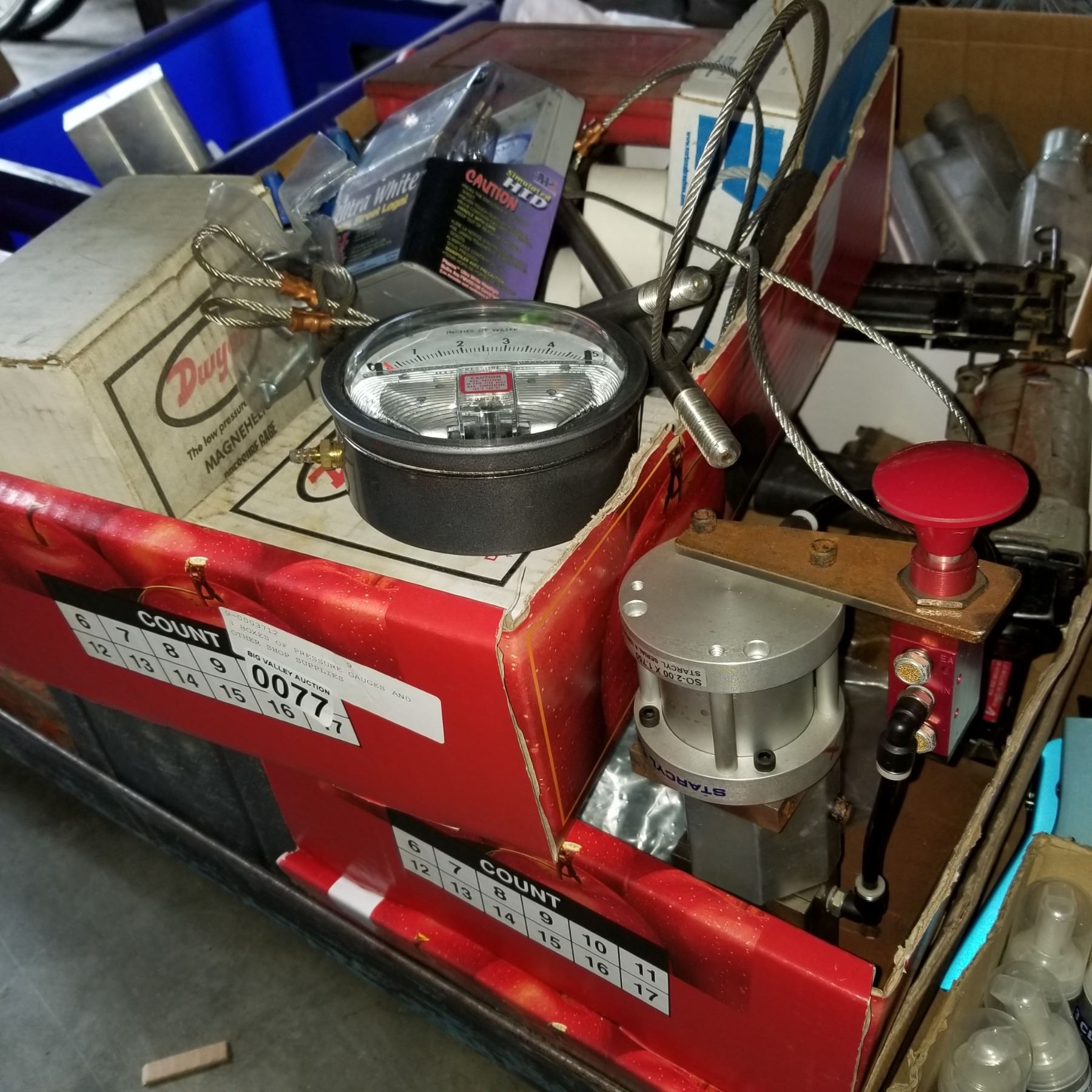 3 BOXES OF PRESSURE GAUGES AND OTHER SHOP SUPPLIES