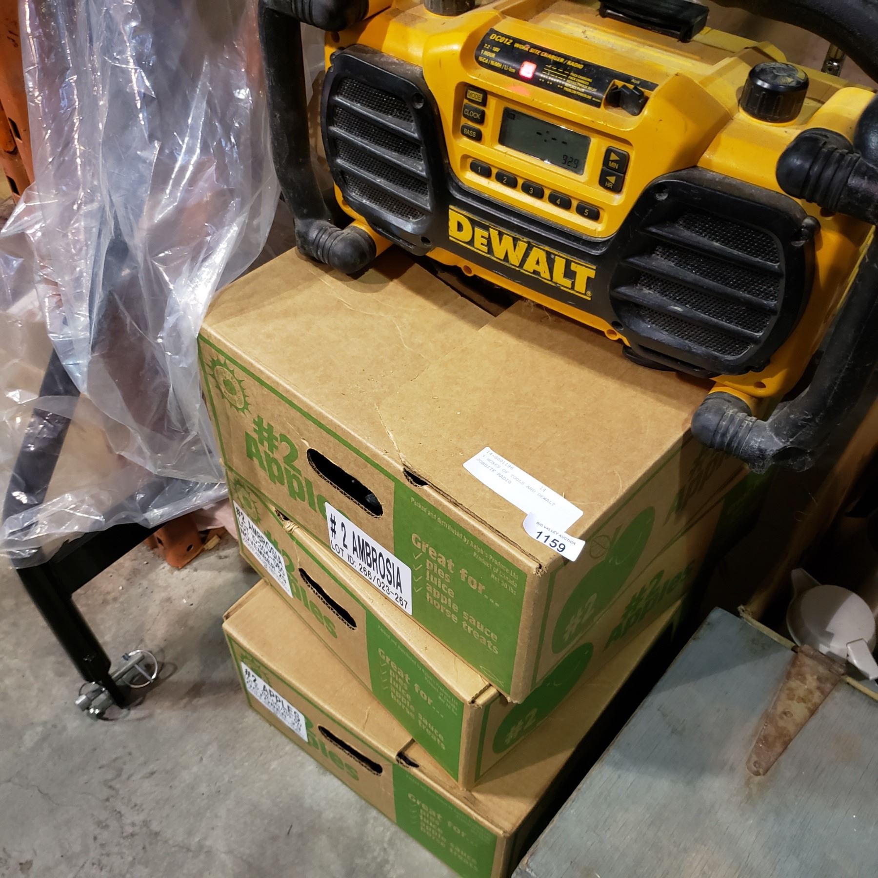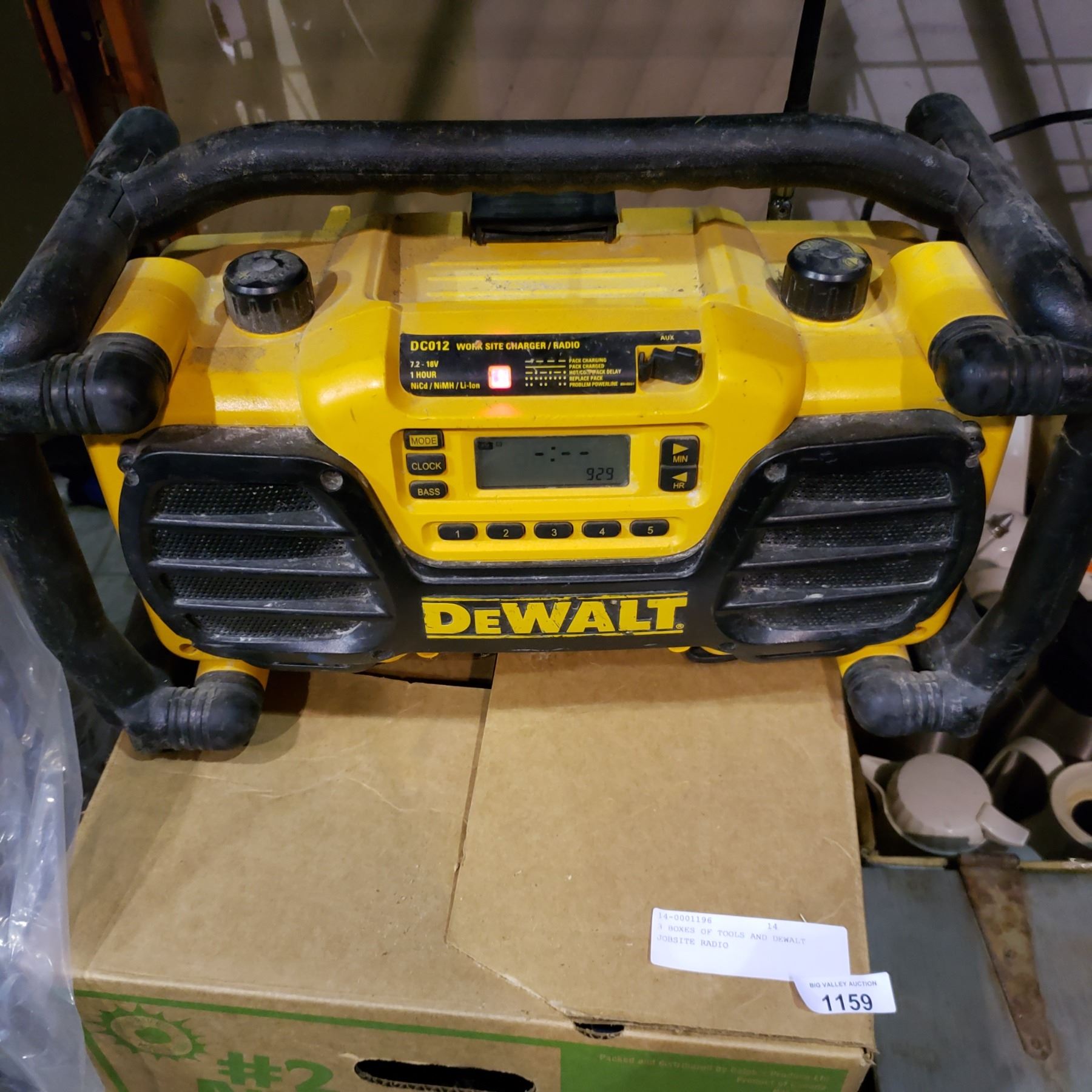 3 BOXES OF TOOLS AND DEWALT JOBSITE RADIO