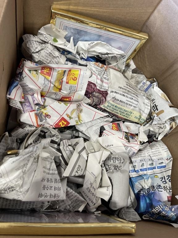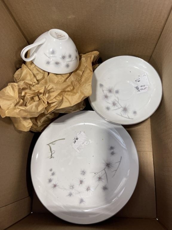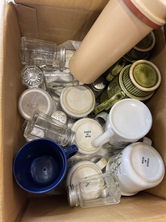 3 BOXES OF VINTAGE CRYSTAL, CHINA, COFFFEE THERMOS, ETC