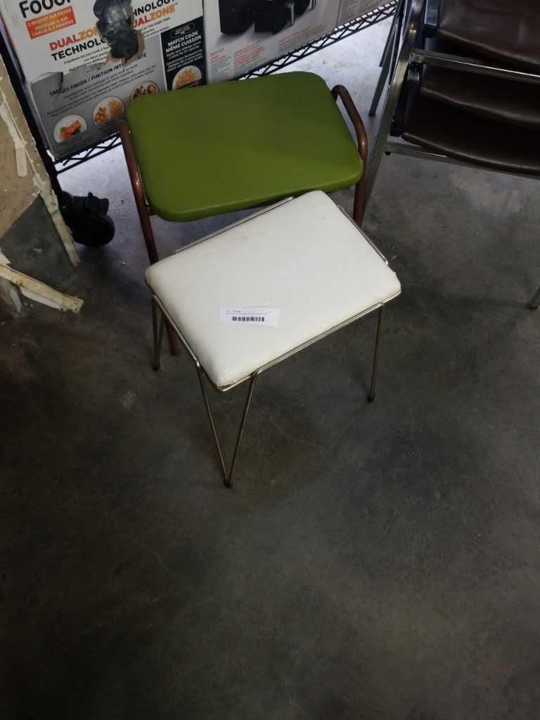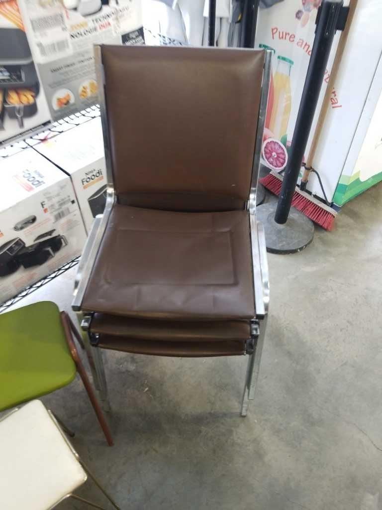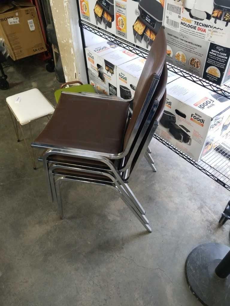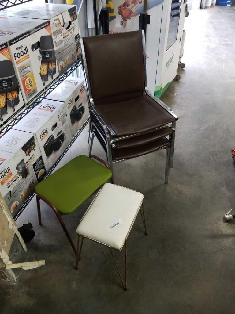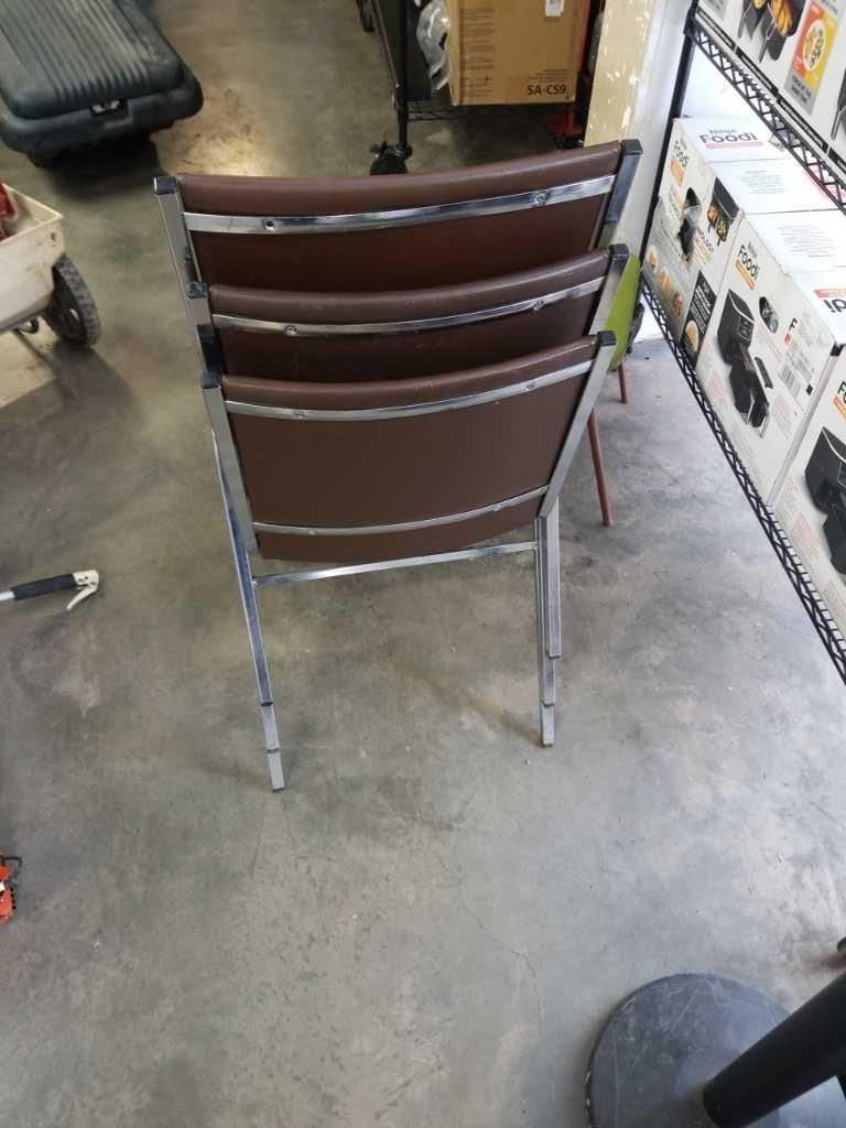 3 BROWN STACKING CHAIRS AND 2 STOOLS